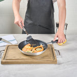 - Stainless steel handle offers ergonomic grip and enhances control during cooking