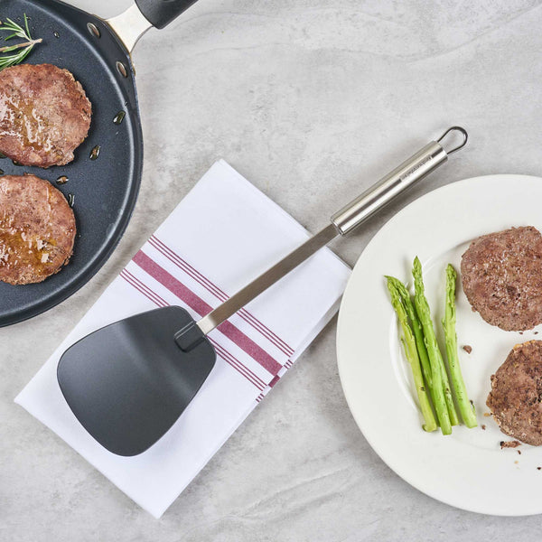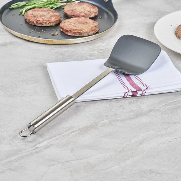 BLACK NYLON HIGH HEAT WOK SPATULA - WITH STAINLESS STEEL HANDLE