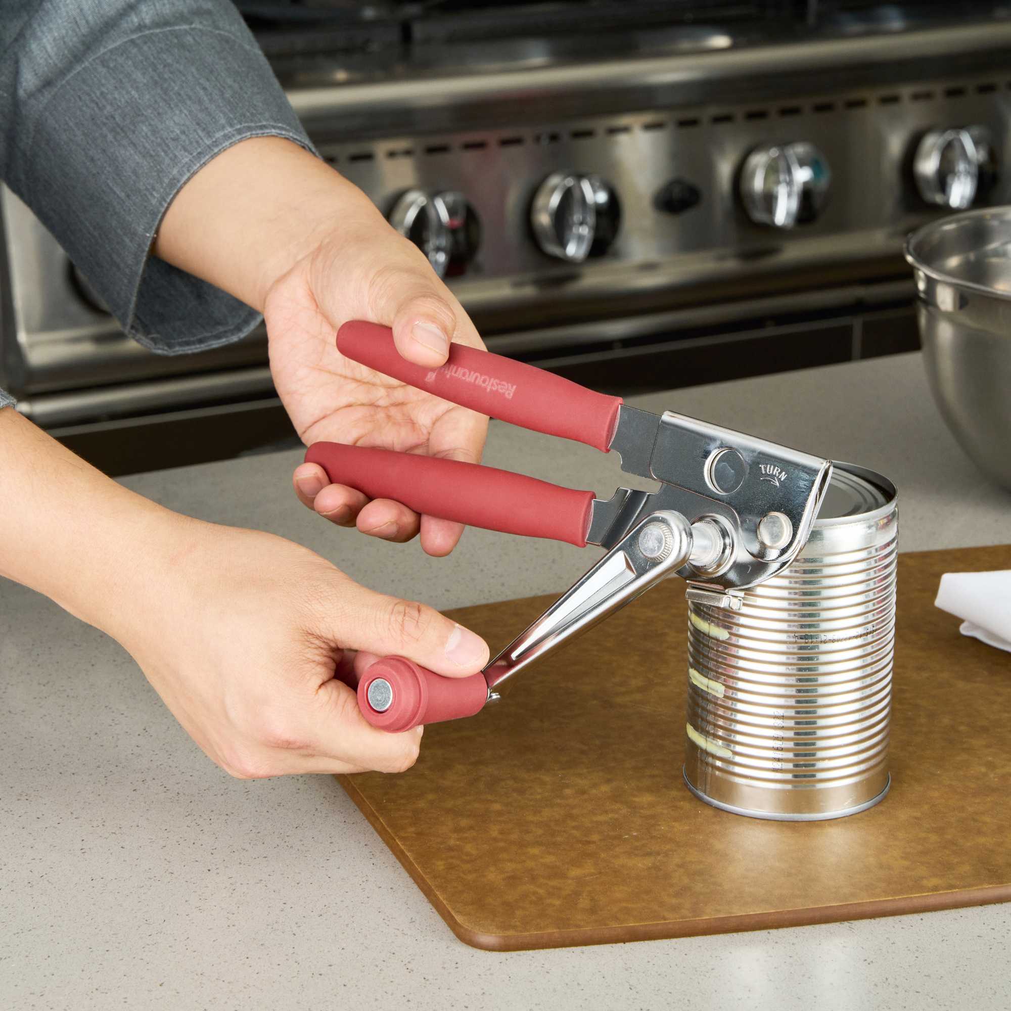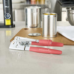 RED STAINLESS STEEL HANDHELD CRANK CAN OPENER - MAGNETIC LID LIFTER