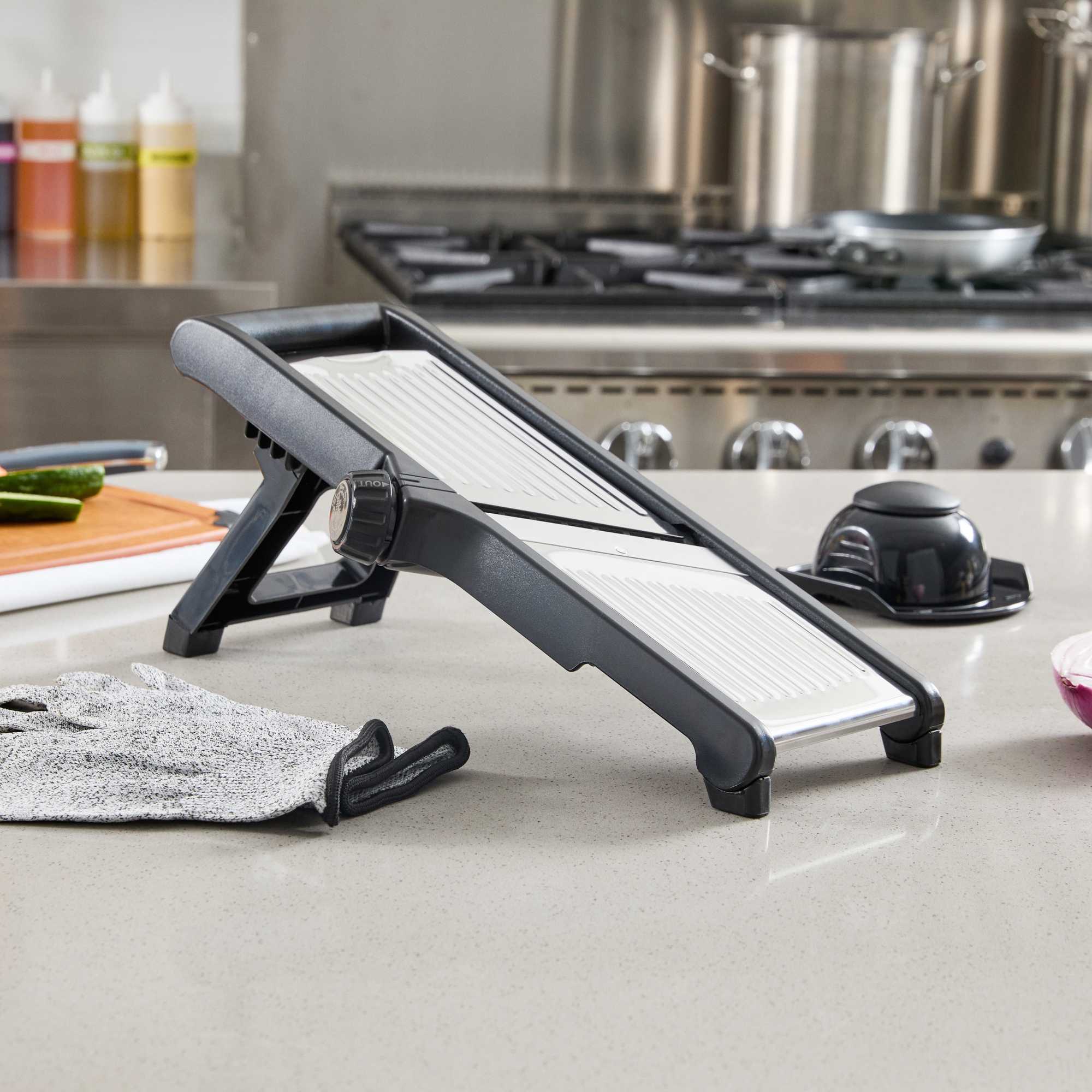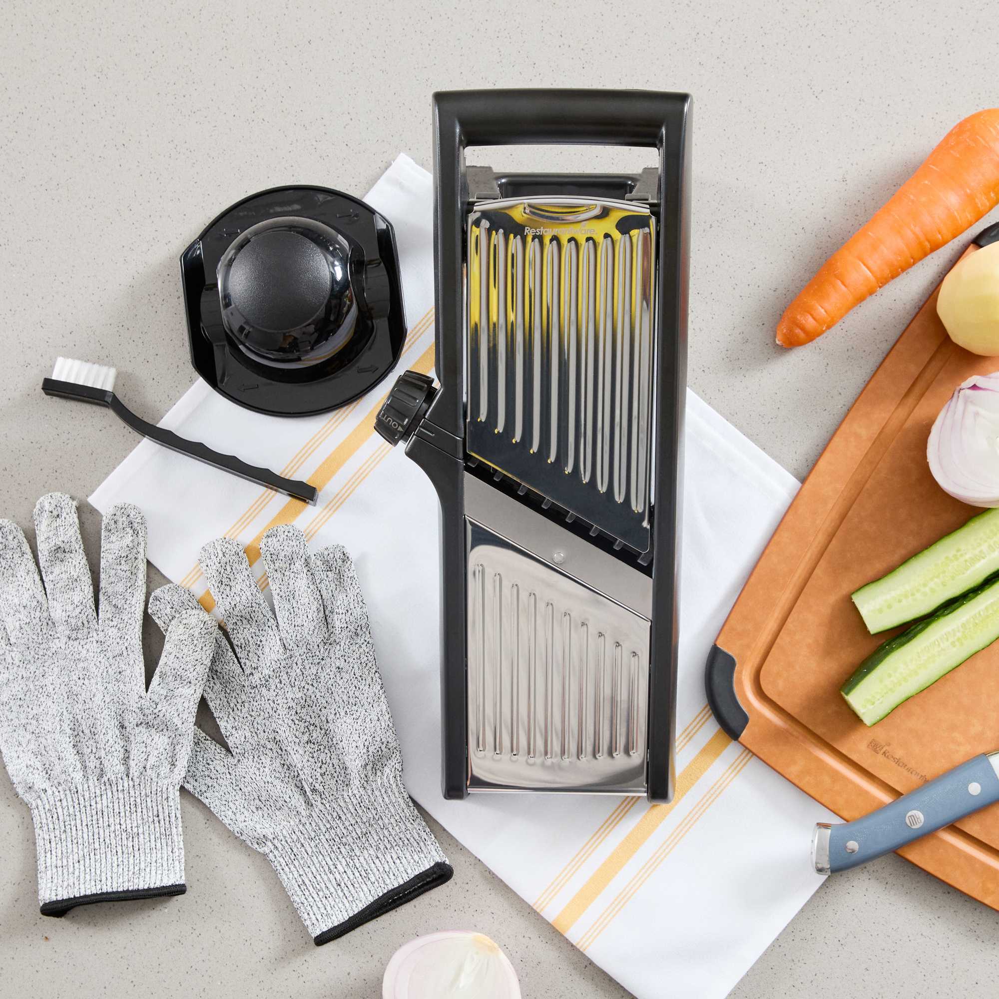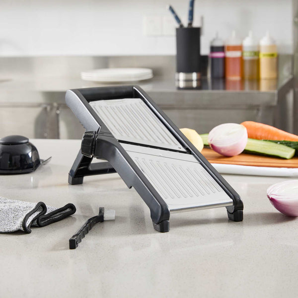 STAINLESS STEEL ADJUSTABLE MANDOLINE SLICER - CUT-RESISTANT GLOVES