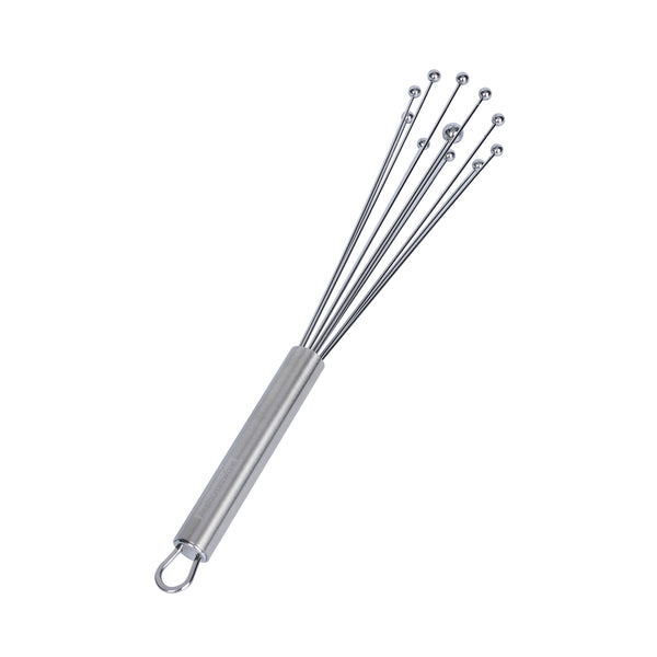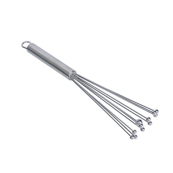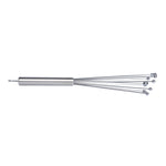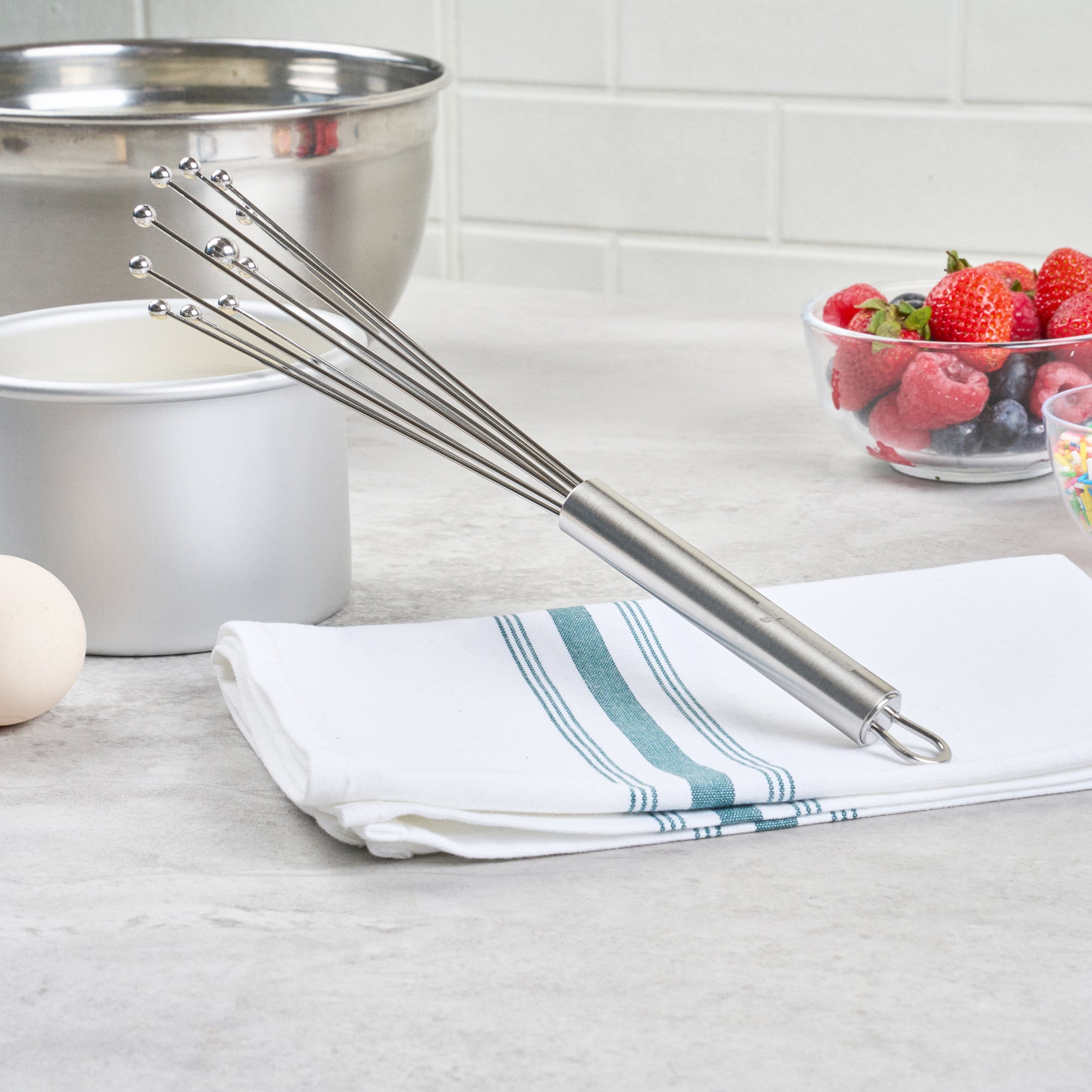 Achieve perfect blends effortlessly with our German Standard Stainless Steel Whisk. This stainless steel whisk, with its robust construction, ensures exceptional durability and resistance to corrosion, making it ideal for heavy-duty kitchen use. At 10 3/4 inches in length, this kitchen whisk offers optimal reach and control, allowing chefs to mix ingredients seamlessly in various bowl sizes. Its ball whisk design enhances aeration and efficiency during blending, drastically reducing mixing time in busy foodservice environments. The ergonomically designed handle minimizes hand fatigue, providing comfort during extended use, while the built-in eyelet hook keeps your kitchen organized by offering convenient storage. This wire whisk also withstands the rigors of frequent use, ensuring reliable performance in demanding commercial kitchens. Dishwasher-safe for easy cleaning, it maintains the highest hygiene standards, making it a must-have for culinary professionals. Each order includes 6 German Standard Stainless Steel Whisks.