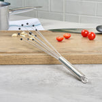Enhance your kitchen efficiency with non-scratch utensils. The German Standard Stainless Steel Ball Whisk is crafted with stainless steel construction, ensuring durability and longevity for rigorous kitchen use. Its heat-resistant silicone-tipped whisk prevents scratching on non-stick cookware, preserving the integrity of your kitchen equipment while offering optimal performance as a stainless steel whisk. Measuring 12.6 inches in length, this whisk provides ample reach for mixing in deep bowls or pots, enhancing versatility during food preparation. Designed with an ergonomic handle, it offers a comfortable grip that reduces hand fatigue, making it ideal for extended use. The dishwasher-safe design simplifies post-service cleanup, promoting hygiene in busy kitchens with ease. Elevate your kitchen's functionality with this silicone-tipped whisk. Each order includes 24 German Standard Stainless Steel Balloon Whisks.