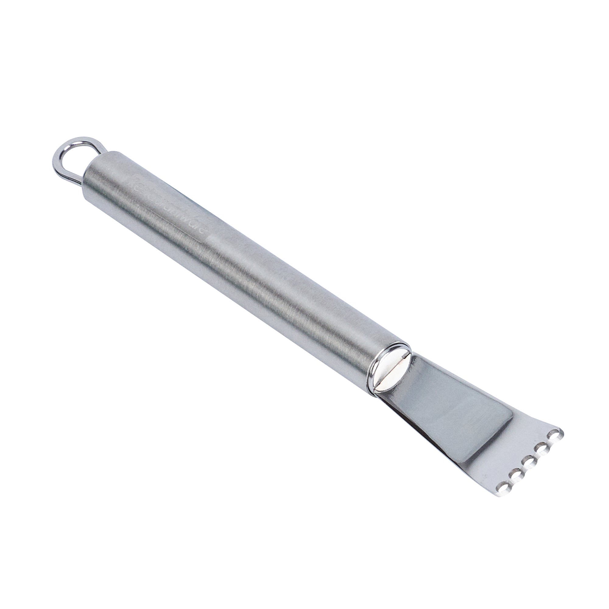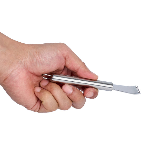 Enhance your dishes with effortless zesting. The German Standard Citrus Zester with an ergonomic handle and compact storage design ensures a comfortable grip and reduces hand fatigue, making it an ideal citrus zester for busy kitchens. Its sharp blades swiftly remove citrus peels without bitterness, amplifying flavors in your culinary creations and providing an exceptional lemon peeler experience. Featuring a built-in eyelet hook, this fruit zesting tool offers easy storage and organization, keeping your kitchen tidy. The durable stainless steel construction of this zester withstands the rigors of frequent use, providing optimal performance and longevity. With a compact length of 5 3/4 inches, this tool is designed for convenient storage and handling, ideal for zesting lemons, limes, and oranges to add fresh citrus flavors to dishes. Simplify your kitchen tasks with this dishwasher-safe design, ensuring hygiene standards are met effortlessly. Each order includes 6 German Standard Citrus Zester.