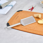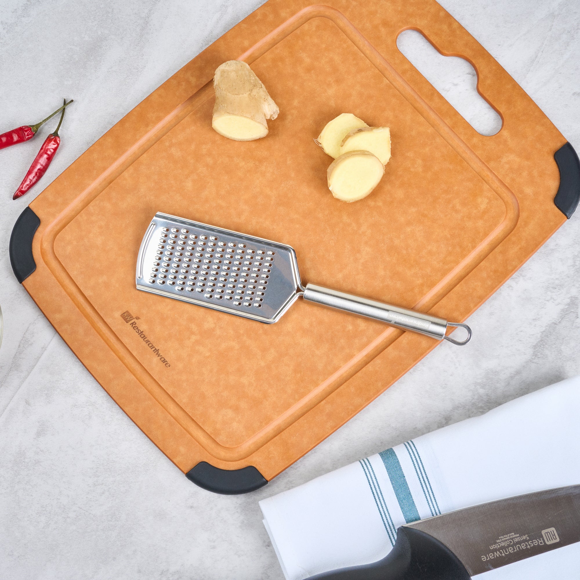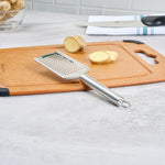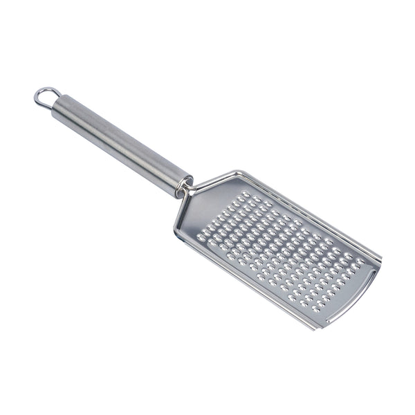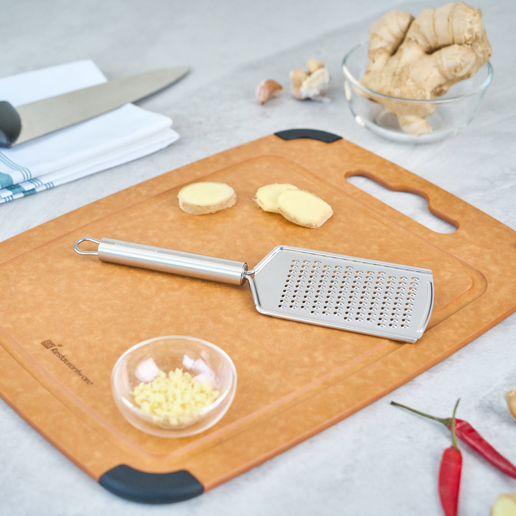 Enhance kitchen efficiency with a precise grating tool designed for professionals. The German Standard Ergonomic Grip Fine Cheese Grater offers sharp blades that ensure effortless and precise grating, perfect for creating exquisite meal garnishes. Crafted from durable stainless steel, this grater resists corrosion and withstands the rigors of frequent use, making it an ideal stainless steel grater for busy kitchens. Its fine grating surface is perfect for delicately grating hard cheeses, zesting citrus fruits, or grating whole spices, such as nutmeg, to enhance flavor profiles in various recipes. The ergonomic handle design provides a comfortable grip, reducing hand fatigue during extended use, while its compact size of approximately 9.8 inches by 2.2 inches ensures easy storage and maneuverability. Dishwasher-safe, this nutmeg grater simplifies cleaning, ensuring hygiene and efficiency in food preparation areas. Elevate your culinary creations with this indispensable kitchen tool. Each order includes 6 German Standard Ergonomic Grip Fine Cheese Graters.