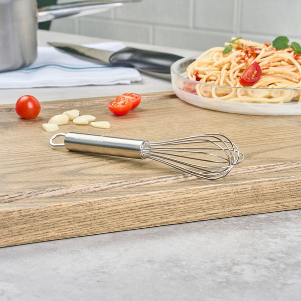 Mix ingredients with precision using a whisk built for durability. The German Standard Stainless Steel Whisk boasts a 7.25-inch length, making it perfect for mixing in small bowls and enhancing precision in culinary tasks. Crafted from high-quality stainless steel, this cooking whisk offers exceptional resistance to corrosion, ensuring long-lasting performance in busy kitchen settings. The French whisk design optimizes aeration and blending, making it an ideal whisk for whipping cream or emulsifying sauces with ease. Featuring an ergonomically designed handle, it reduces hand fatigue during extended use, while the built-in eyelet hook enables organized kitchen storage. Its dishwasher-safe construction simplifies cleanup, fostering hygiene in food preparation areas. Enhance your culinary efficiency with this versatile whisk that combines functionality and comfort. Each order includes 6 German Standard Stainless Steel Whisks.