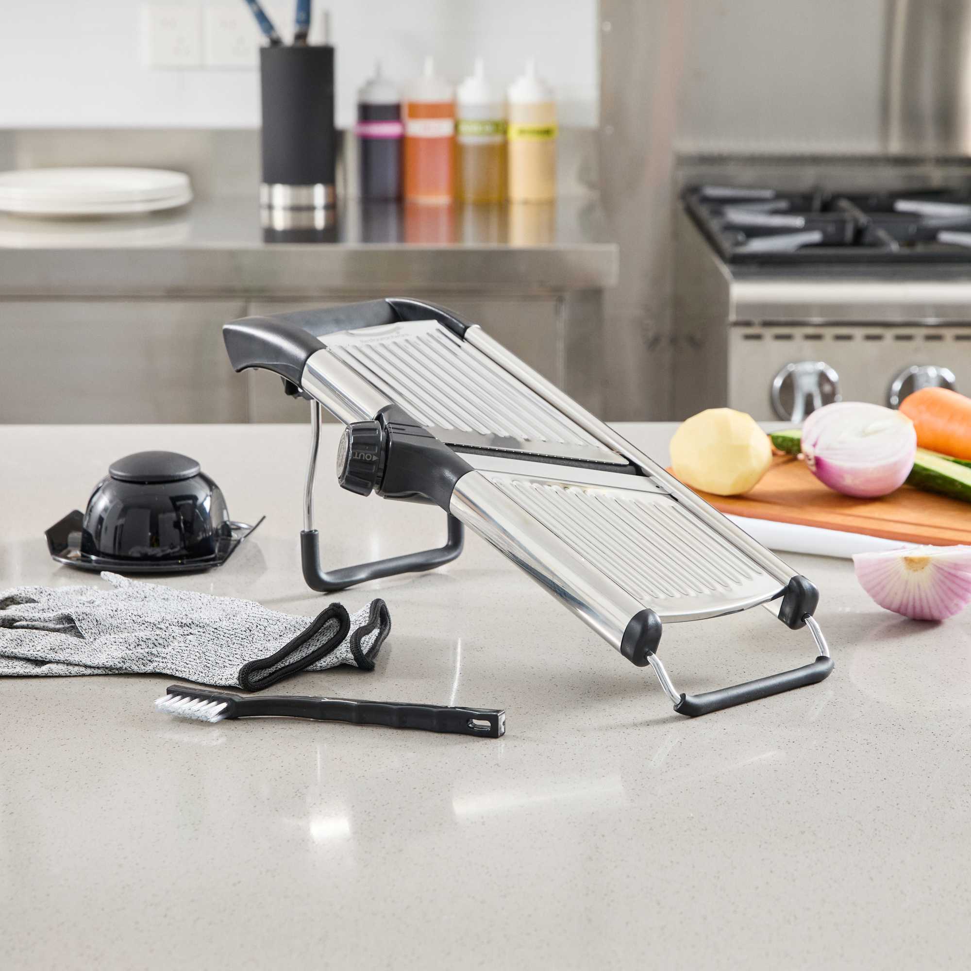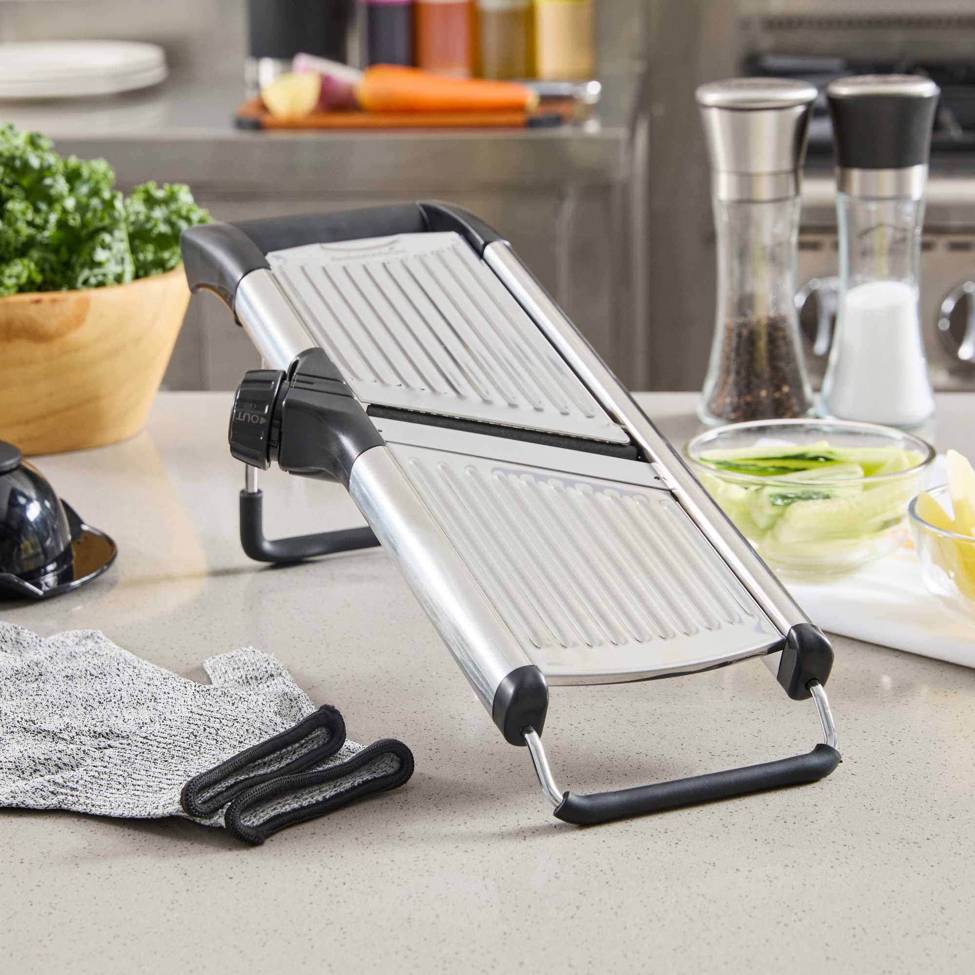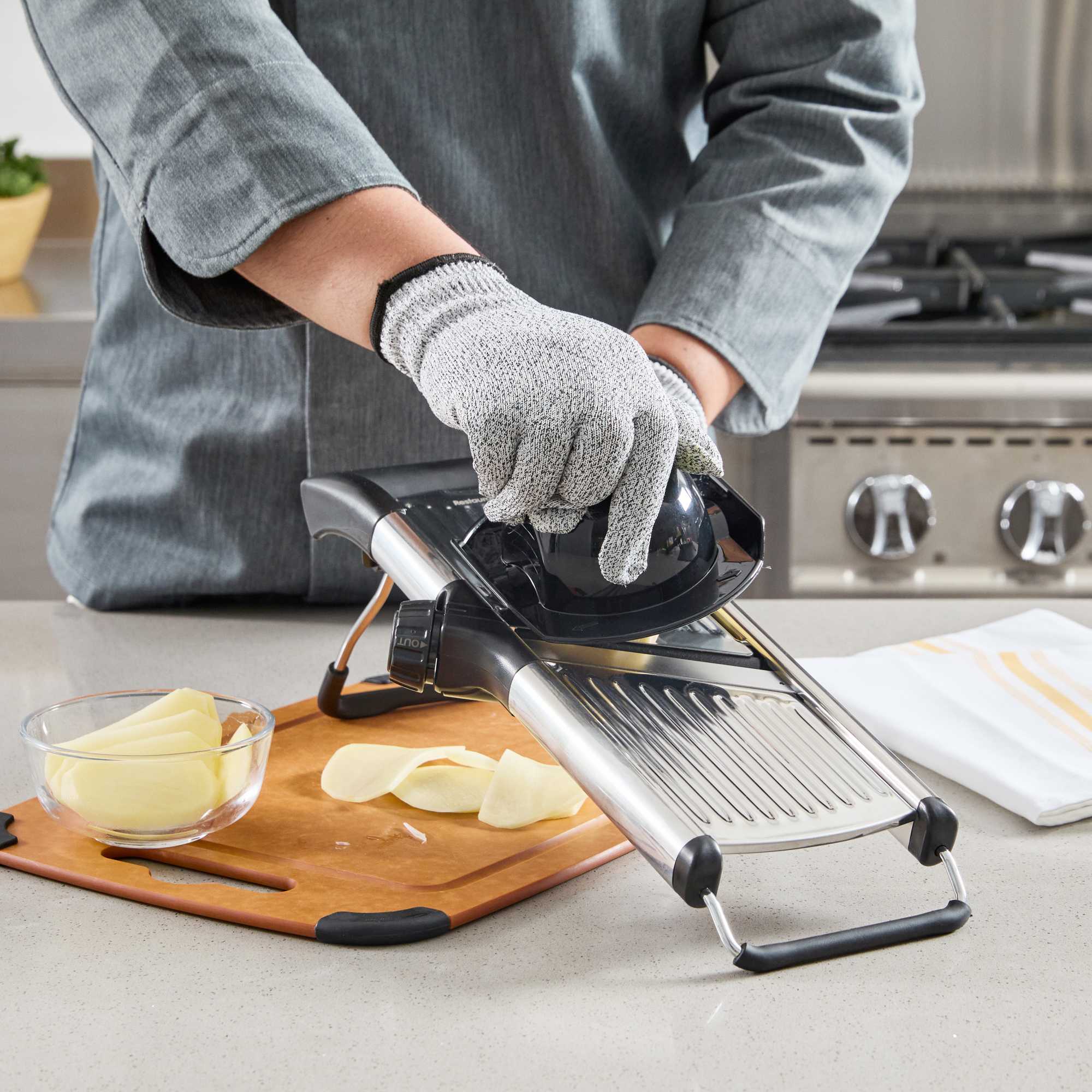 - Included cut-resistant glove enhances kitchen safety