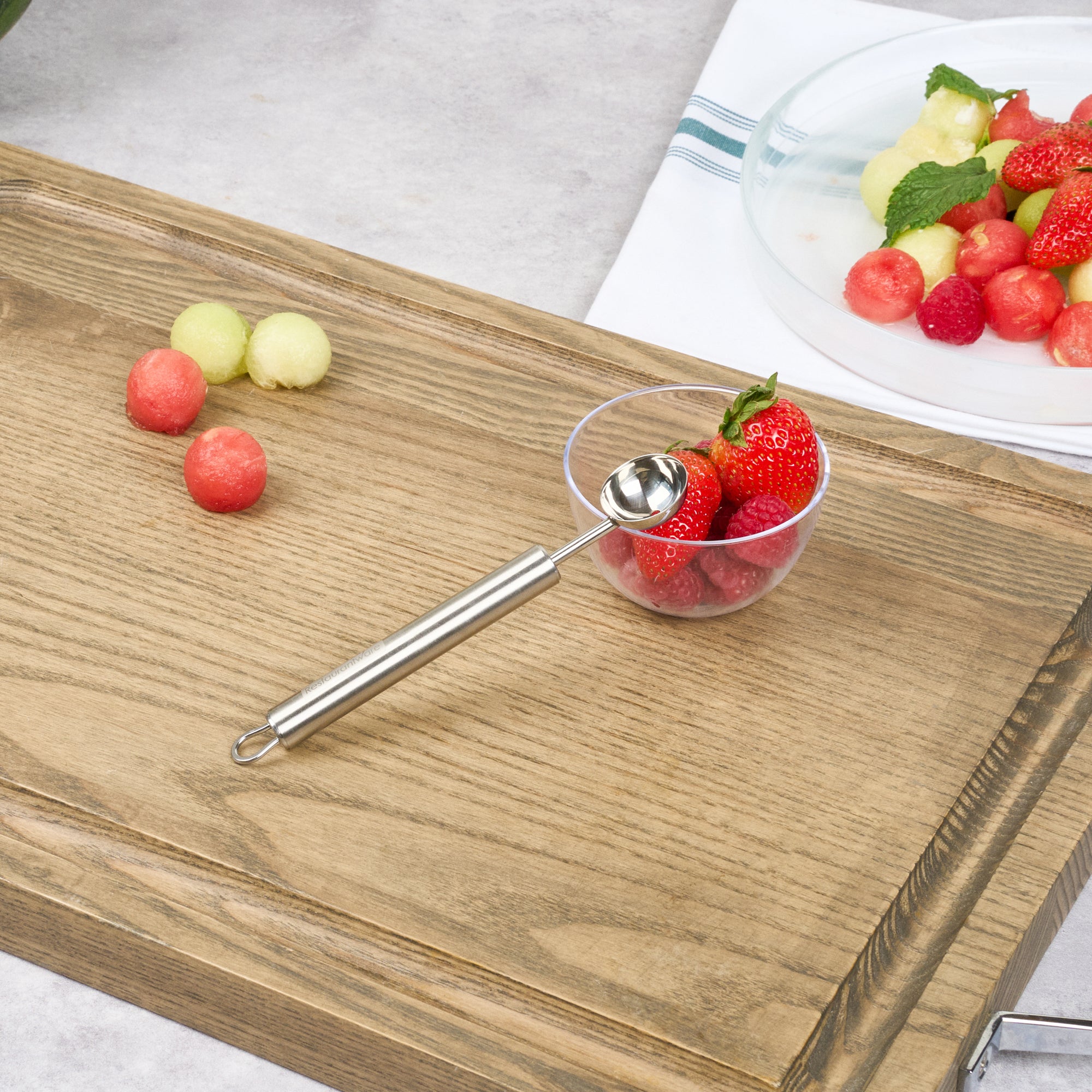 - Sharp edges create perfect melon balls effortlessly