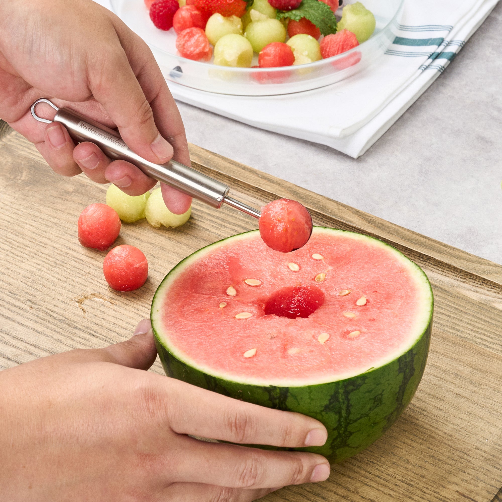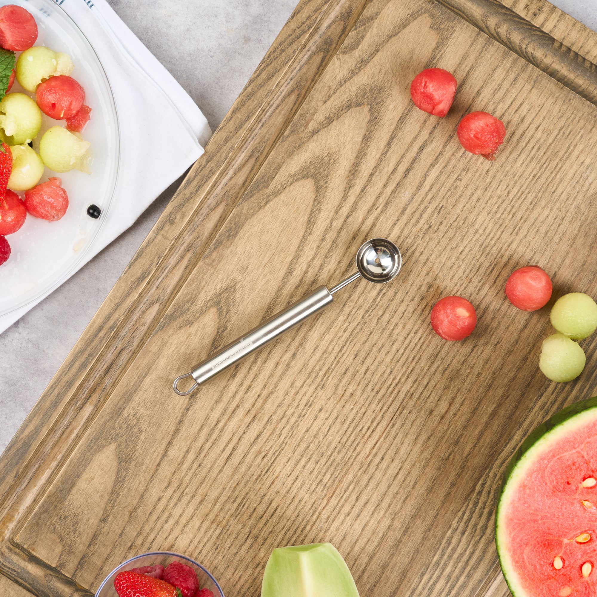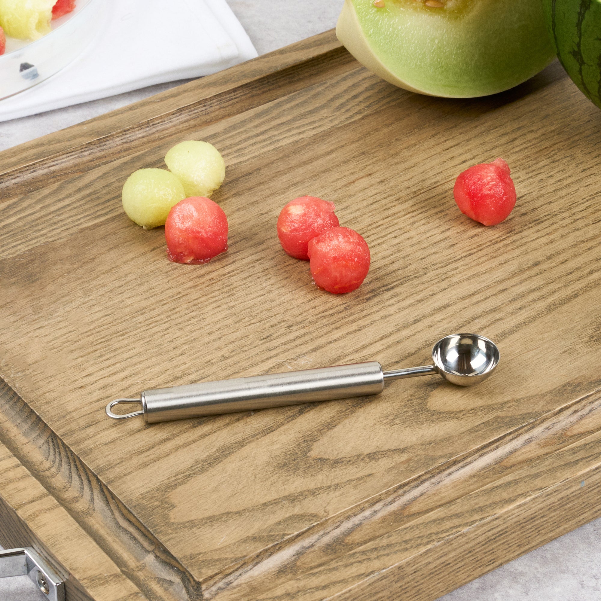 - Sharp edges create perfect melon balls effortlessly