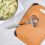 - Slotted design effectively drains excess oil or liquid when lifting food off pan