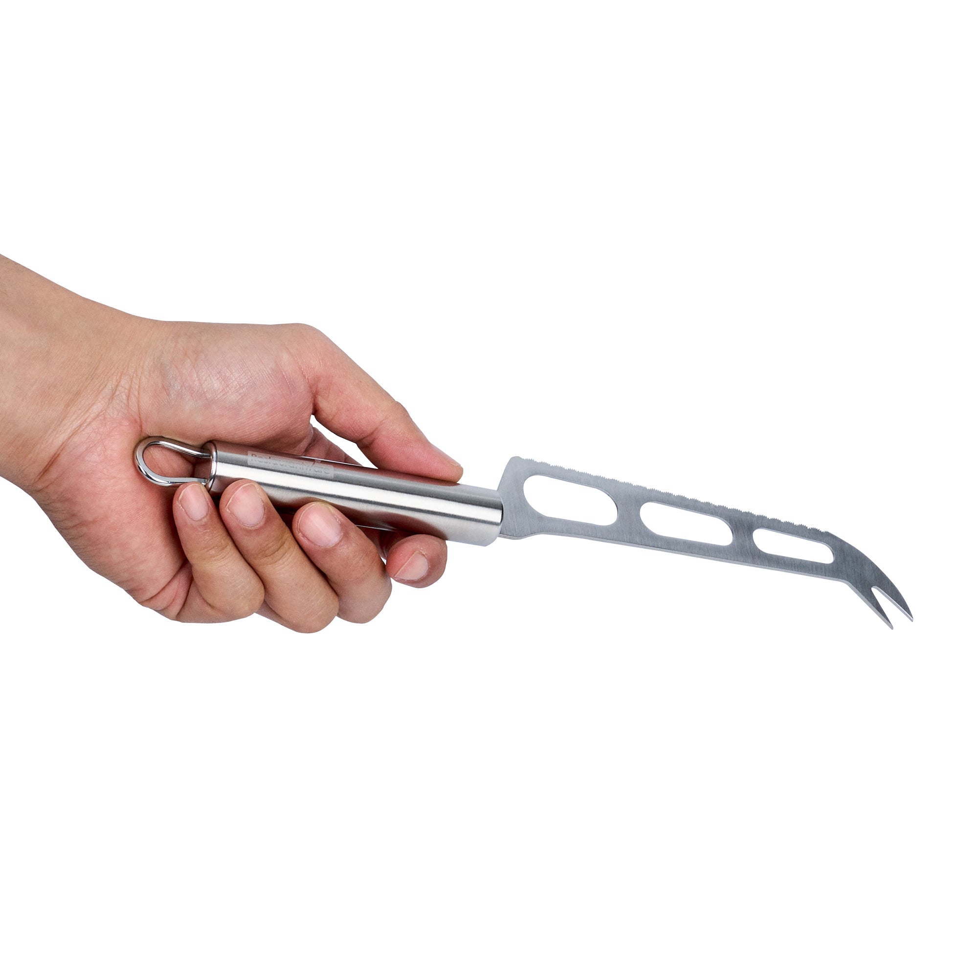 Effortlessly slice soft cheeses with precision and ease. The German Standard Soft Cheese Knife offers a perforated blade, minimizing cheese sticking and ensuring clean, uniform cuts for perfect presentation. Constructed from stainless steel, this soft cheese knife promises durability and resistance to corrosion, making it a reliable tool for busy kitchens. Its ergonomic handle provides a comfortable grip, reducing hand fatigue and enhancing control, especially during prolonged use. With a 10 3/4-inch length, this stainless steel cheese slicer delivers optimal leverage for precise slicing, making it an ideal choice for restaurant appetizer preparation and catering services. Dishwasher-safe material simplifies cleanup, maintaining hygiene standards effortlessly. Enhance your cheese service with this versatile cheese server, essential for cheese tasting events and gourmet presentations. Each order includes 6 German Standard Soft Cheese Knife.