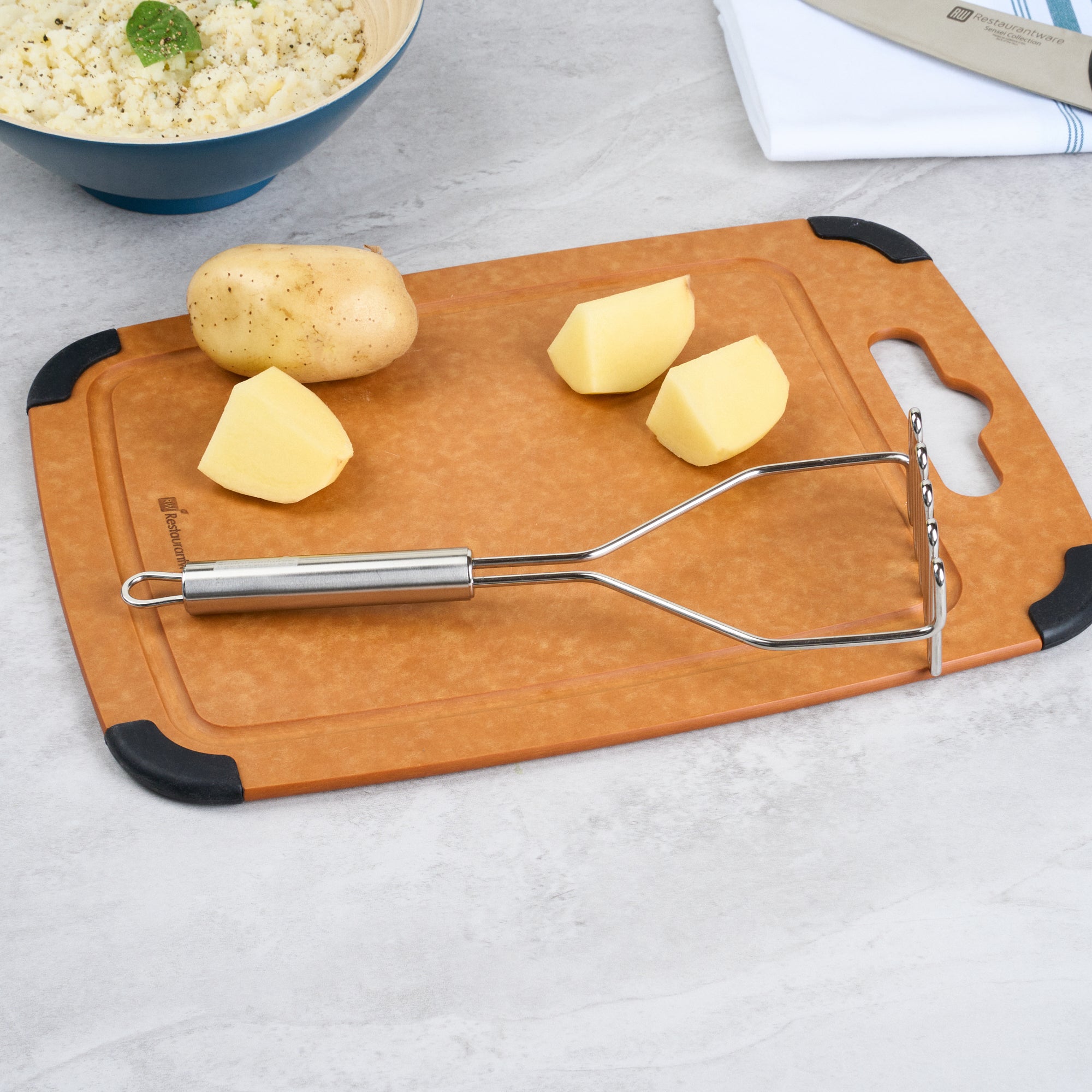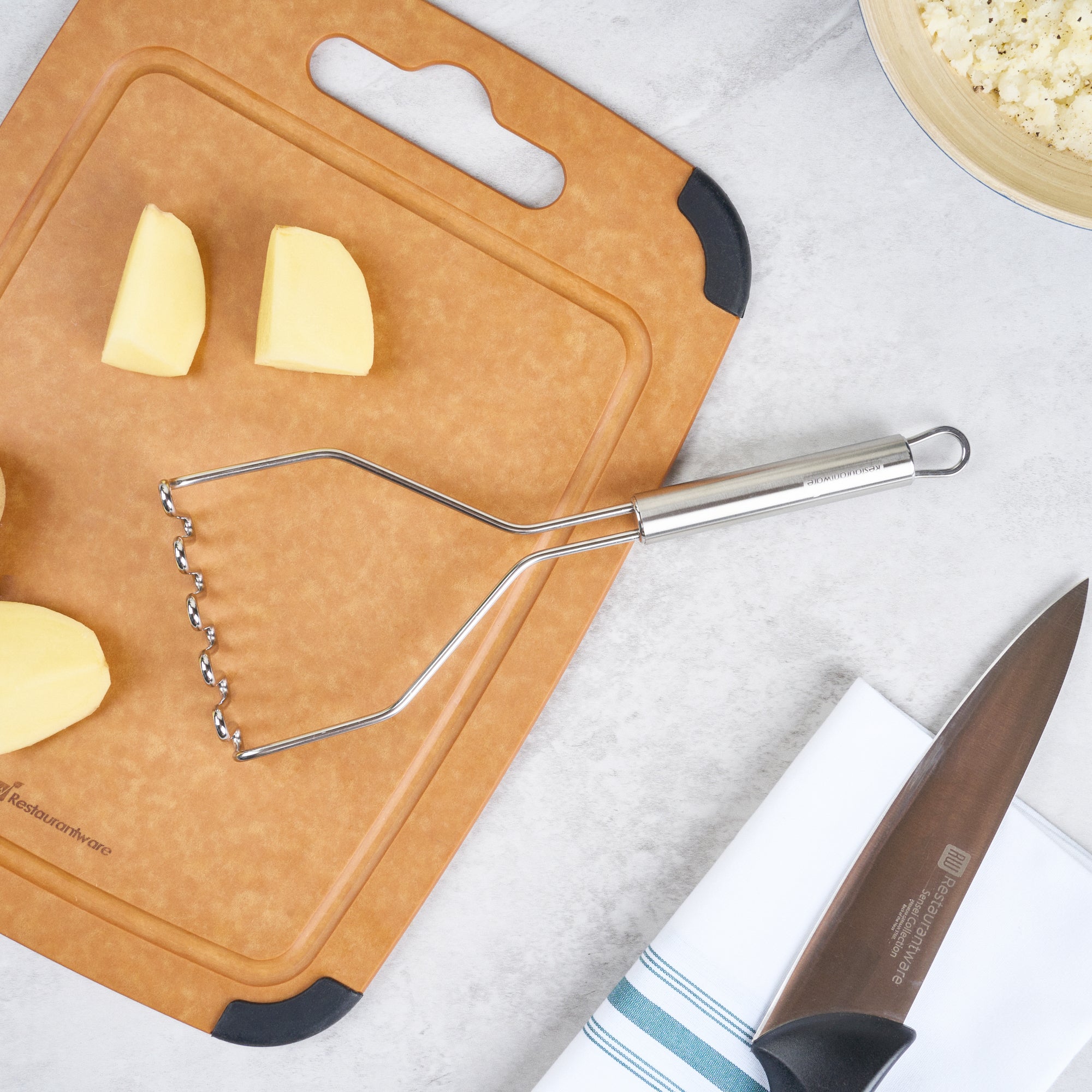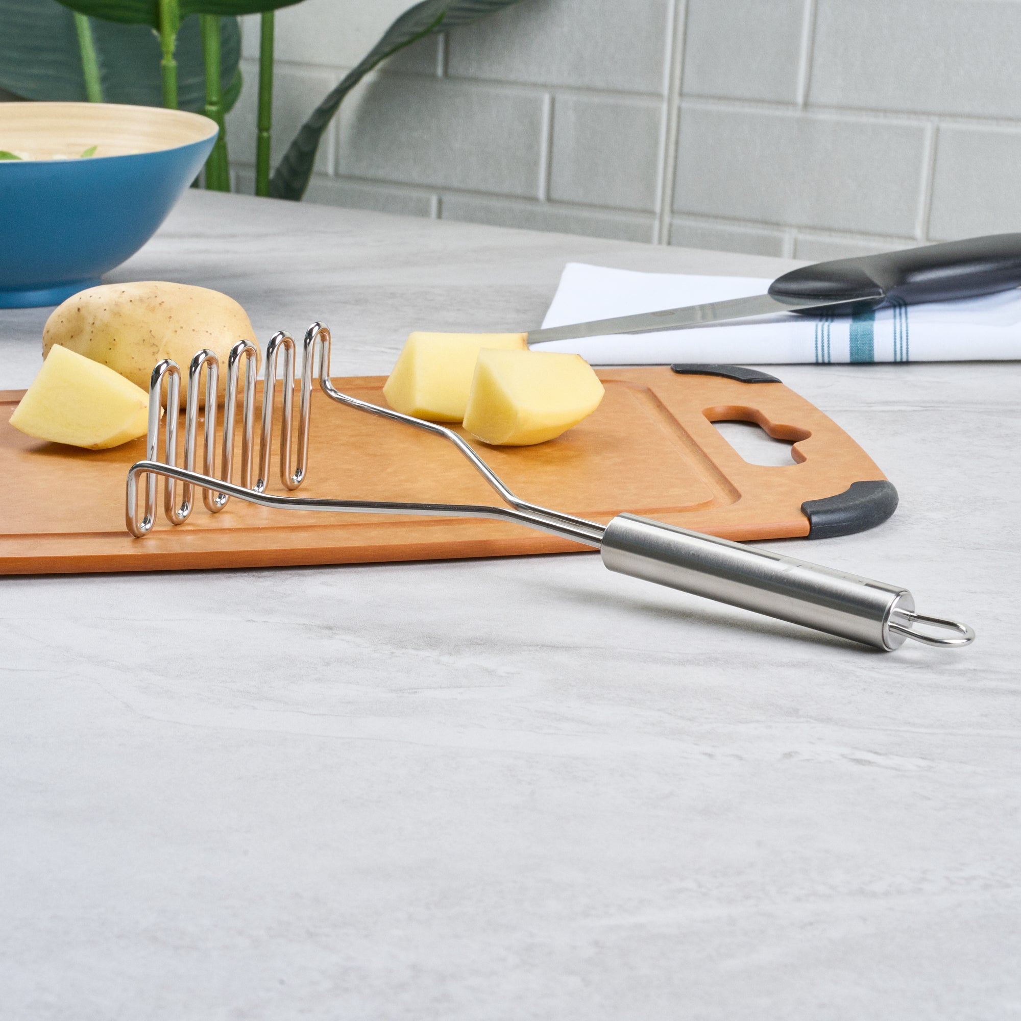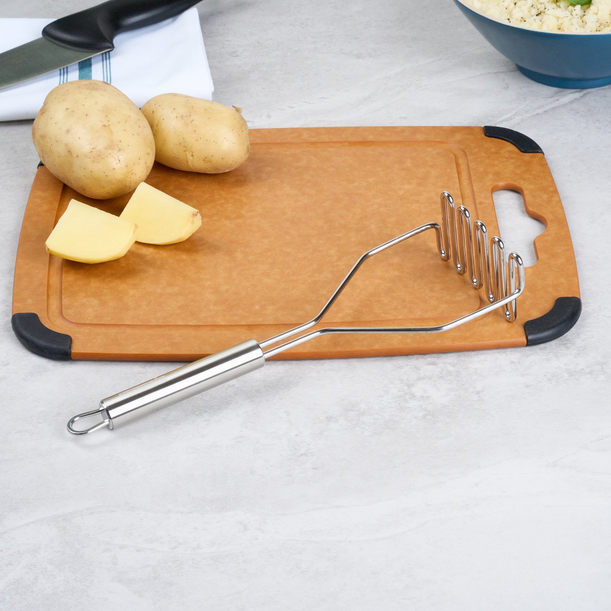 STAINLESS STEEL SQUARE-FACED POTATO / BEAN MASHER