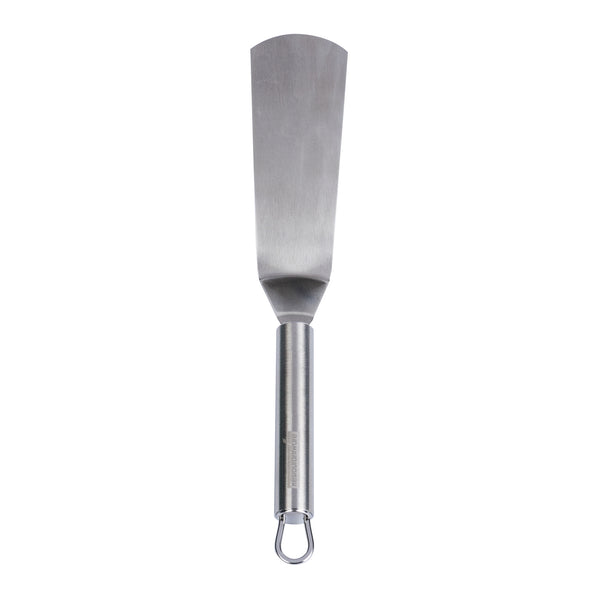 Enhance your kitchen efficiency with ergonomic precision. The German Standard Ergonomic Grip Turner features a flat, wide blade designed for effortless flips, impressing clients with your culinary skills. Crafted from stainless steel, this 11-inch utensil withstands the rigors of frequent use. Its ergonomically designed handle provides a comfortable grip, significantly reducing hand fatigue during extended use, a crucial advantage for busy chefs handling food serving plates. Additionally, this turner is dishwasher safe, offering a convenient post-service cleanup, so you can focus more on preparing delectable dishes and less on washing up. Its sleek, silver finish complements any kitchen setup, seamlessly integrating with rectangular angle plates for a cohesive dining experience. Elevate your kitchen's functionality and style with this indispensable tool. Each order includes 1 German Standard Ergonomic Grip Turner.