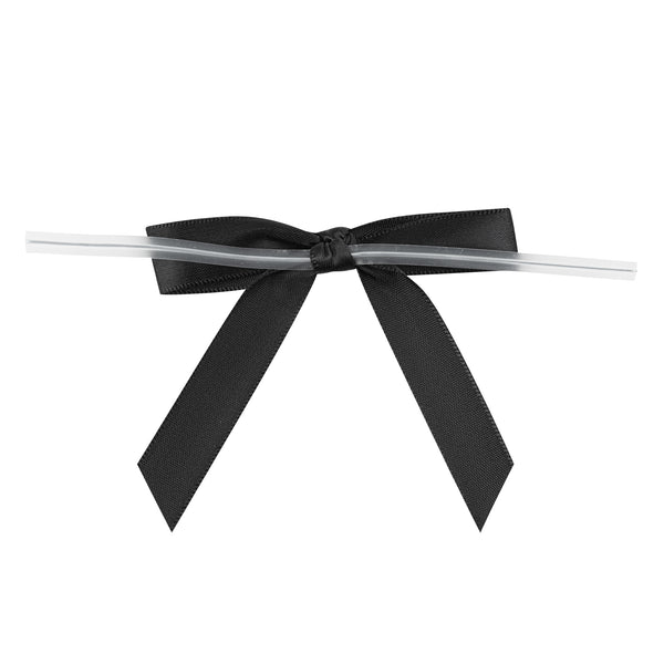 BLACK POLYESTER SATIN TWIST TIE BOW - PRE-TIED