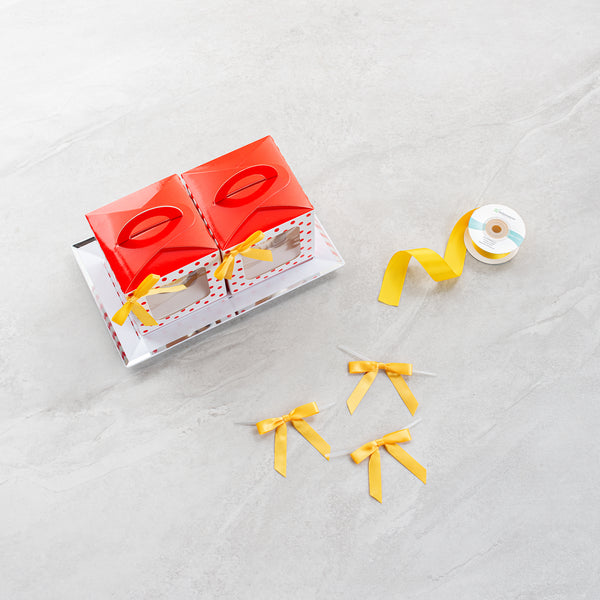These pre-tied bows are equipped with twist-ties to instantly add an elegant touch to your gift packing. These bows save time and effort while still adding a classy touch to any package.