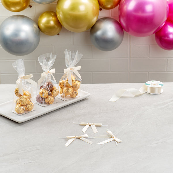 These pre-tied bows are equipped with twist-ties to instantly add an elegant touch to your gift packing. These bows save time and effort while still adding a classy touch to any package.