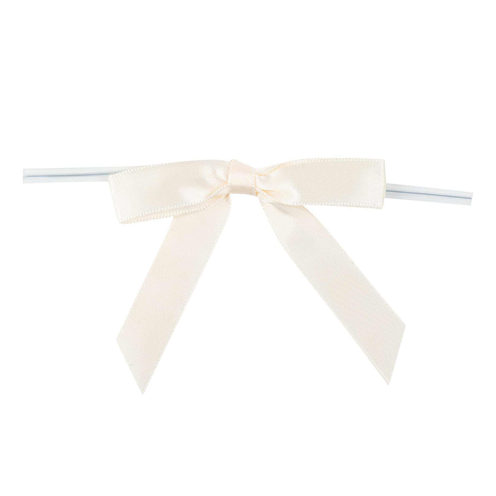 IVORY WHITE POLYESTER SATIN TWIST TIE BOW - PRE-TIED