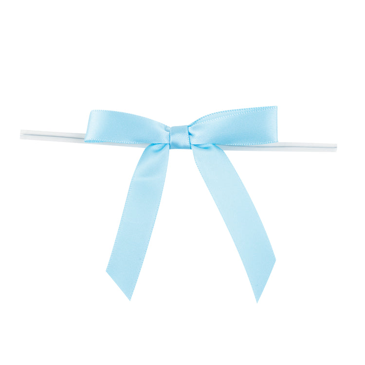 LIGHT BLUE POLYESTER SATIN TWIST TIE BOW - PRE-TIED