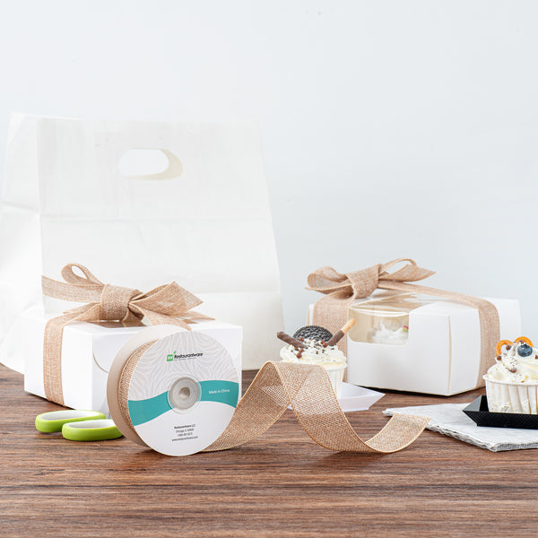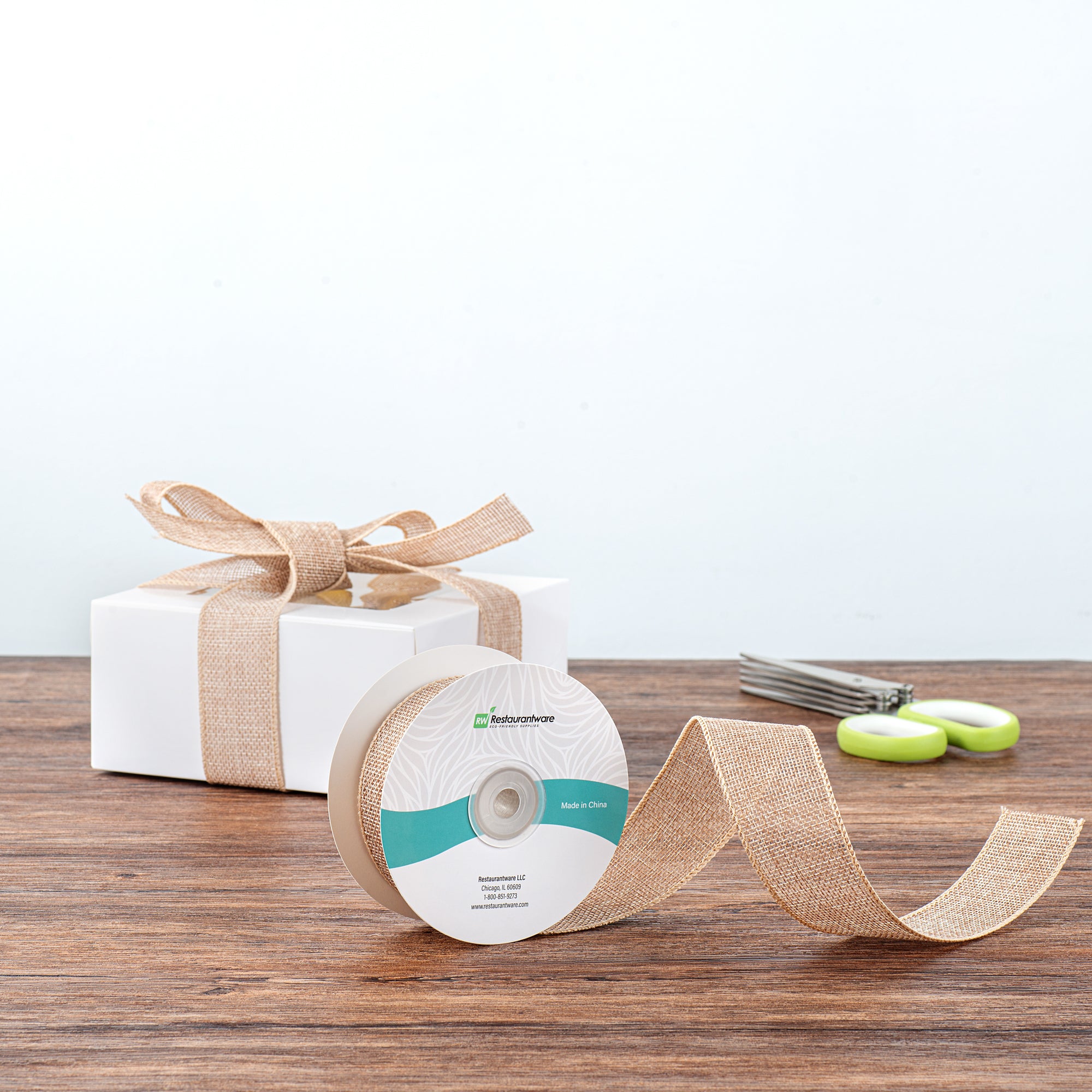 Elevate your culinary presentations with our Gift Tek Natural Cotton Linen Ribbon. Meticulously crafted from a blend of cotton and linen, this kraft ribbon boasts a textured material that imparts a delightful rustic charm to any display. Ideal for gift wrapping, this cotton linen ribbon infuses an earthy style into your packages, making them irresistible to customers. Whether used in invitations, bouquets, or party decorations, this wedding boho ribbon roll proves incredibly versatile. Crafted to avoid fraying, this ribbon roll for gift wrapping maintains its quality and appearance even with frequent handling. Enhancing the professional and elegant appeal of your foodservice business, this kraft natural ribbon is suitable for any occasion. This cotton linen ribbon is both recyclable and biodegradable. With a measurement of 10 yards in length by 1.5 inches in width, this wide ribbon offers ample size for all your decorating needs. Sold in a 1 count box. These items will only degrade outside of the traditional solid waste stream.