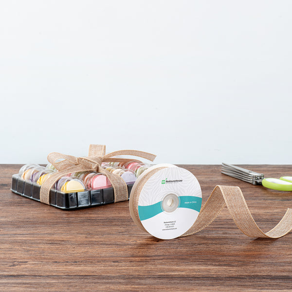 Add a classy touch to your culinary creations with our Gift Tek Natural Cotton Linen Ribbon. Crafted from cotton and linen, this kraft ribbon has a textured material that brings a splendid rustic charm to any presentation. Perfect for gift wrapping, this cotton linen ribbon adds a lively style to your packages, making it irresistible to customers. Ideal for use in invitations, bouquets, or party decorations, this wedding boho ribbon roll is incredibly versatile. This ribbon roll for gift wrapping doesn't fray easily, ensuring it maintains its quality and appearance even with repeated handling. Adding a professional and elegant touch to your foodservice business, this natural kraft ribbon is perfect for any occasion. This natural cotton linen ribbon is recyclable and biodegradable. Offering 10 yards in length by 1 inch in width, this wide ribbon provides ample size for all your decorating needs. Sold in a 1 count box. This item will only degrade outside of the traditional solid waste stream.