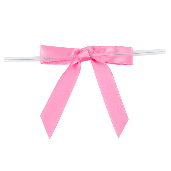 PINK POLYESTER SATIN TWIST TIE BOW - PRE-TIED