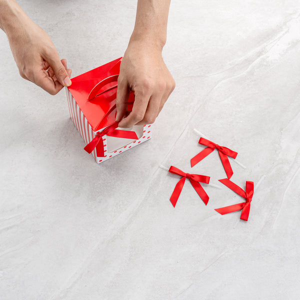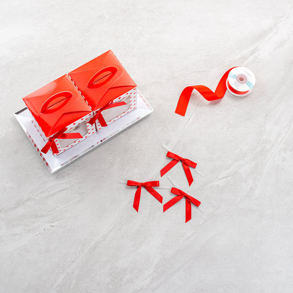 These pre-tied bows are equipped with twist-ties to instantly add an elegant touch to your gift packing. These bows save time and effort while still adding a classy touch to any package.