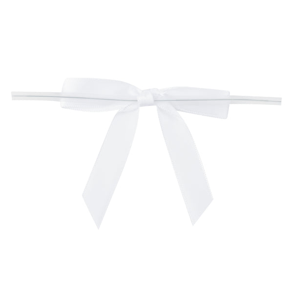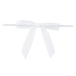 WHITE POLYESTER SATIN TWIST TIE BOW - PRE-TIED