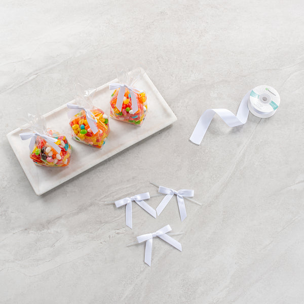 These pre-tied bows are equipped with twist-ties to instantly add an elegant touch to your gift packing. These bows save time and effort while still adding a classy touch to any package.