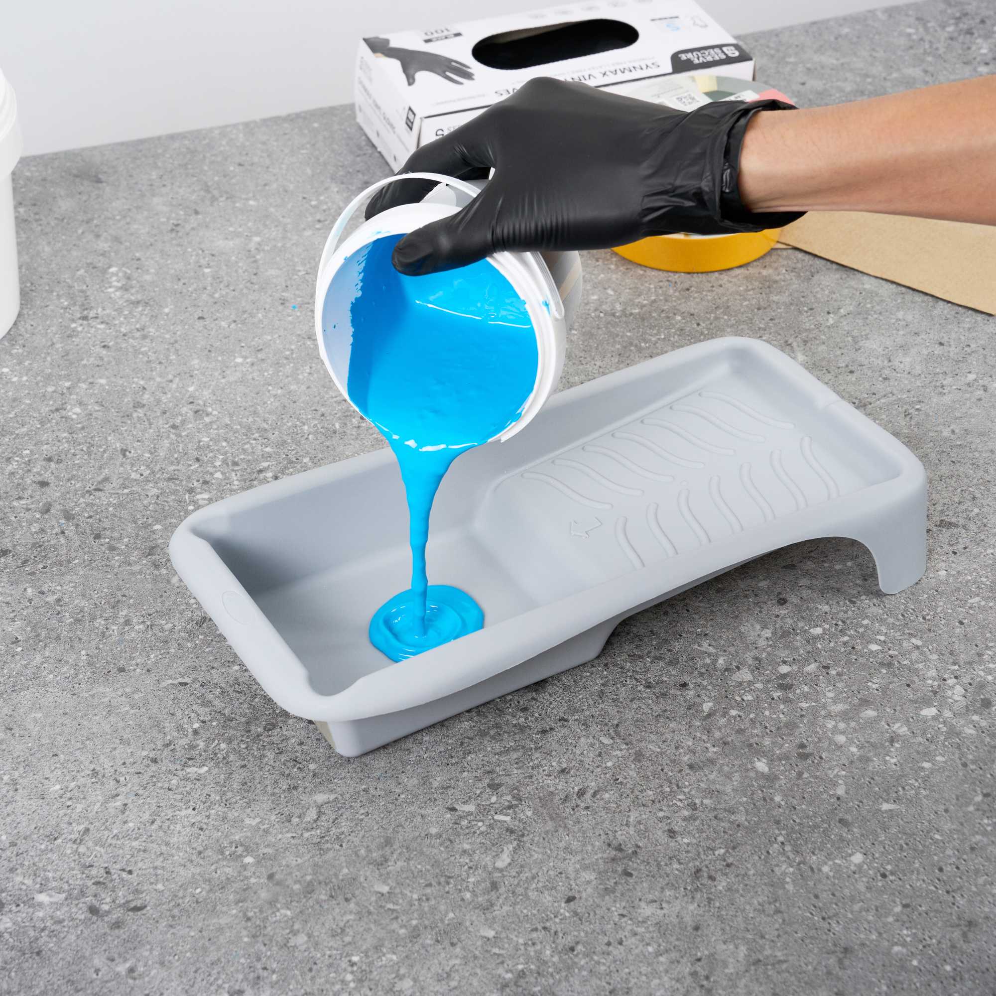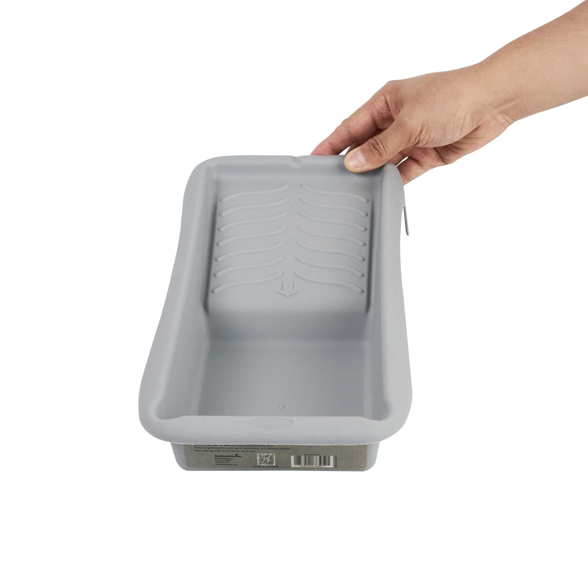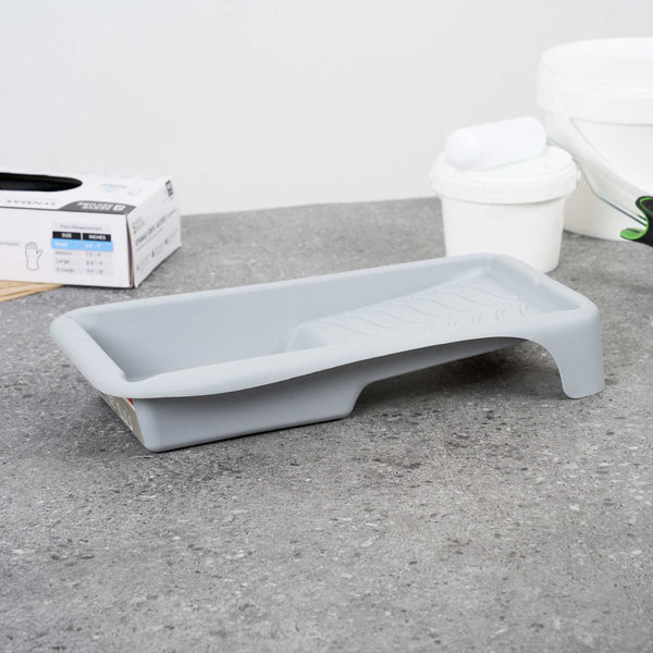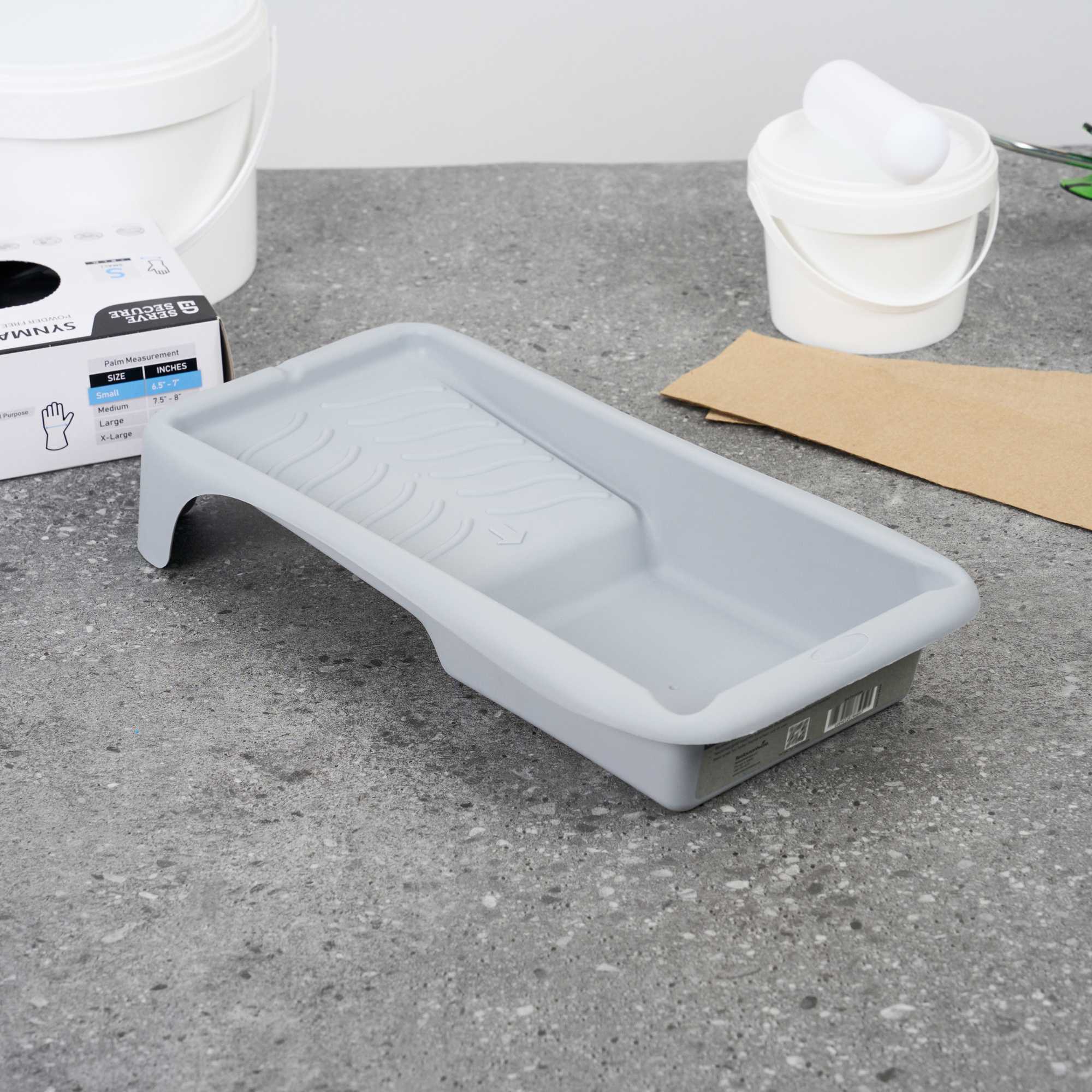 Enhance your painting projects with our Handy Tek 1.5-quart Gray Plastic Paint Tray. This durable and reusable plastic paint tray is designed for multiple uses, making it an effective choice for any painting endeavor. Featuring a deep-groove design, this gray roller paint tray increases rigidity and provides better paint loading, ensuring a smooth and even application. With curved edges, this deep well paint tray allows for maximum paint pickup in corners, reducing waste and improving coverage. A ribbed bottom helps this paint application tray evenly distribute paint on roller covers, minimizing drips and ensuring a consistent coat. Plus, the tray includes a rest area to cradle your roller frame between uses. Measuring 13.9 inches in length by 6.89 inches in width by 2.48 inches in height, this tray offers a generous capacity of 49.35 ounces. Sold in a 1 count box.