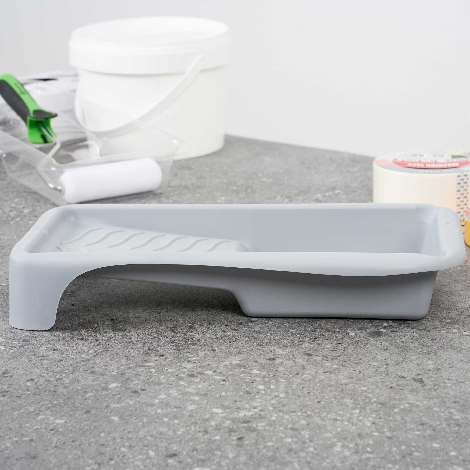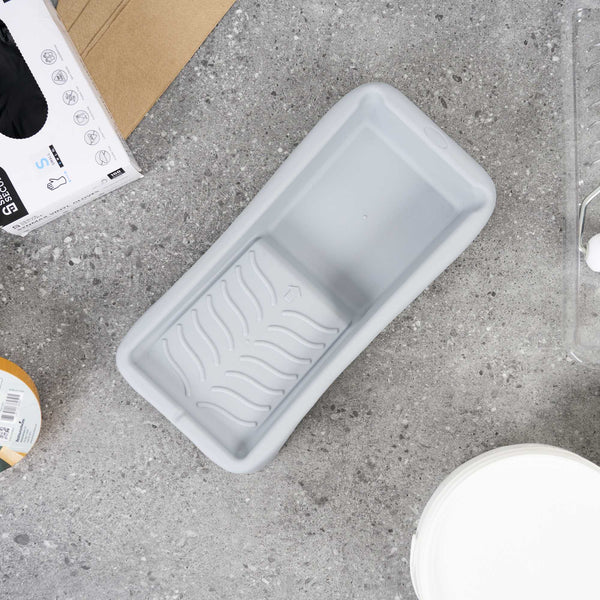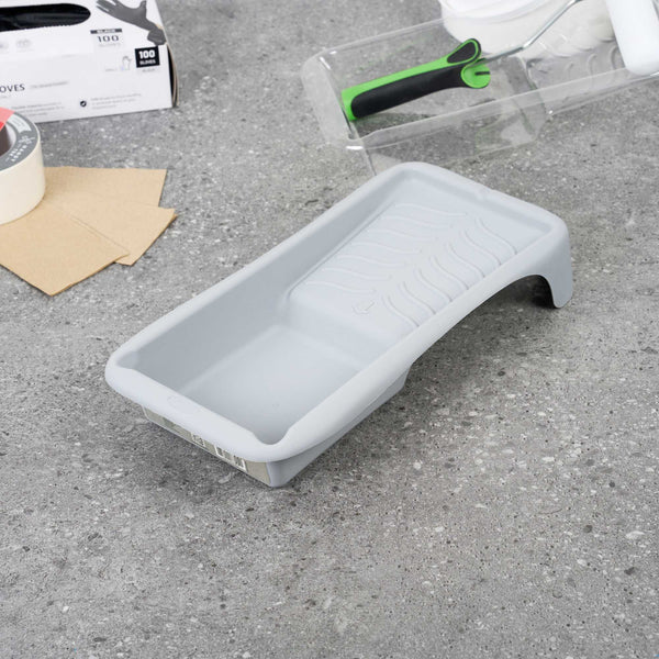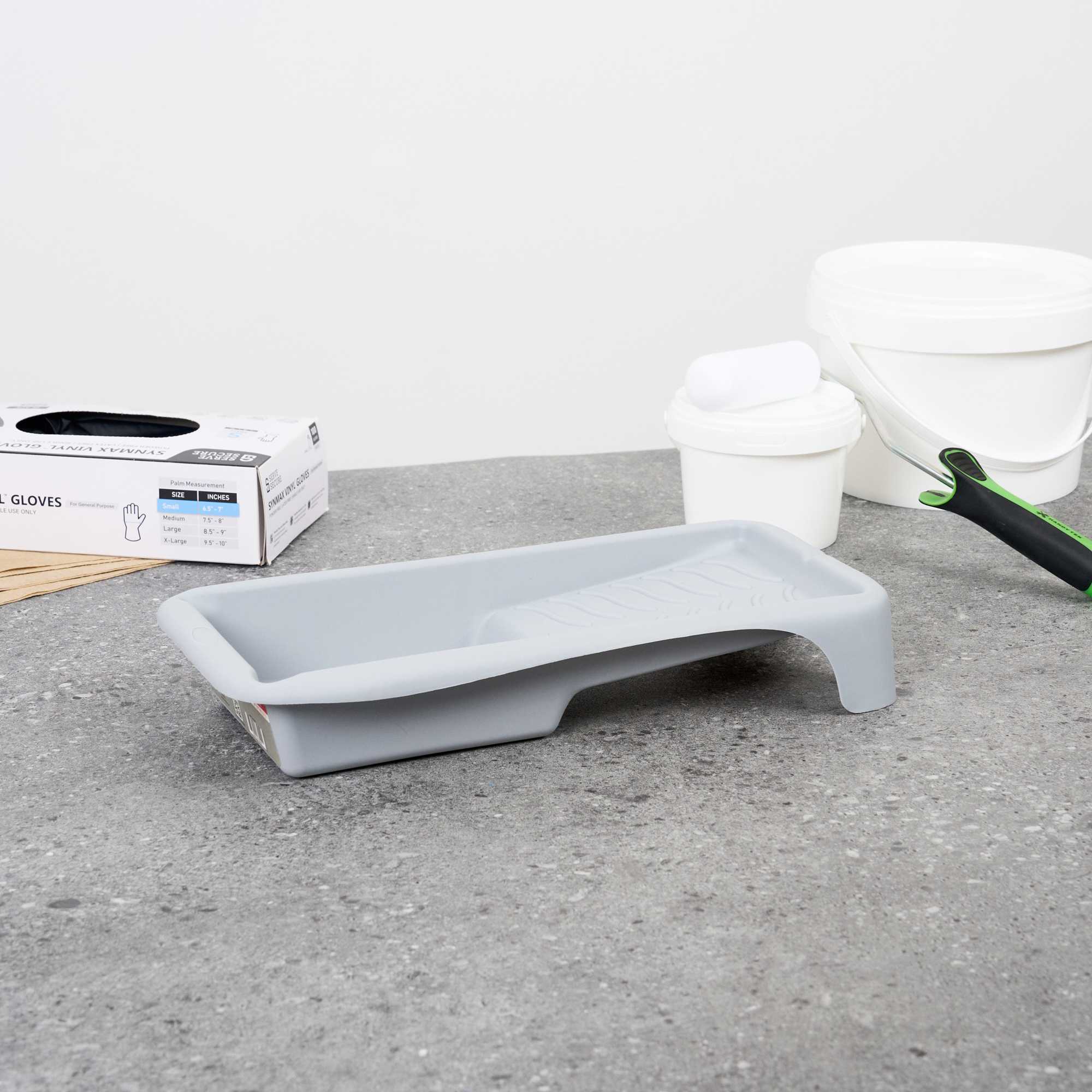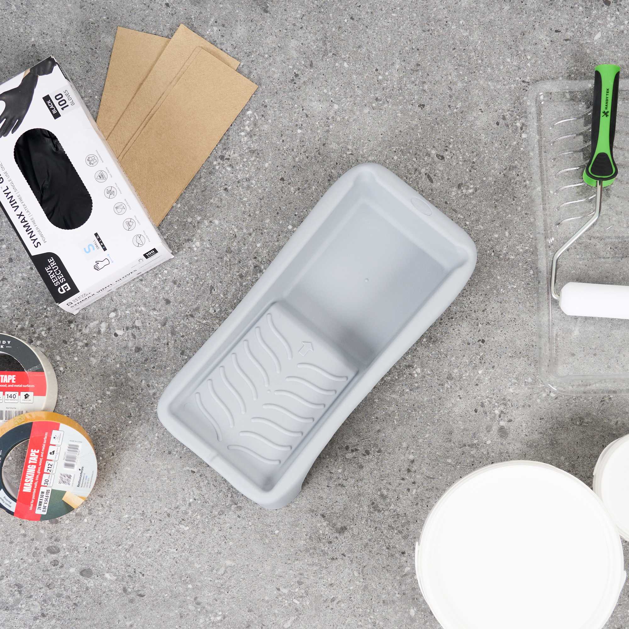 Enhance your painting projects with our Handy Tek 1.5-quart Gray Plastic Paint Tray. This durable and reusable plastic paint tray is designed for multiple uses, making it an effective choice for any painting endeavor. Featuring a deep-groove design, this gray roller paint tray increases rigidity and provides better paint loading, ensuring a smooth and even application. With curved edges, this deep well paint tray allows for maximum paint pickup in corners, reducing waste and improving coverage. A ribbed bottom helps this paint application tray evenly distribute paint on roller covers, minimizing drips and ensuring a consistent coat. Plus, the tray includes a rest area to cradle your roller frame between uses. Measuring 13.9 inches in length by 6.89 inches in width by 2.48 inches in height, this tray offers a generous capacity of 49.35 ounces. Sold in a 96 count box.