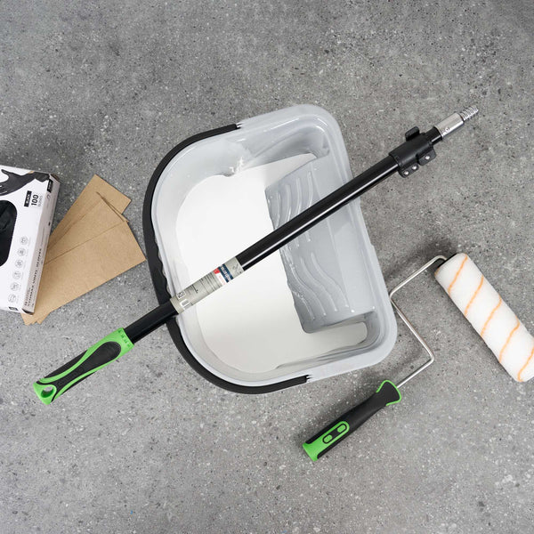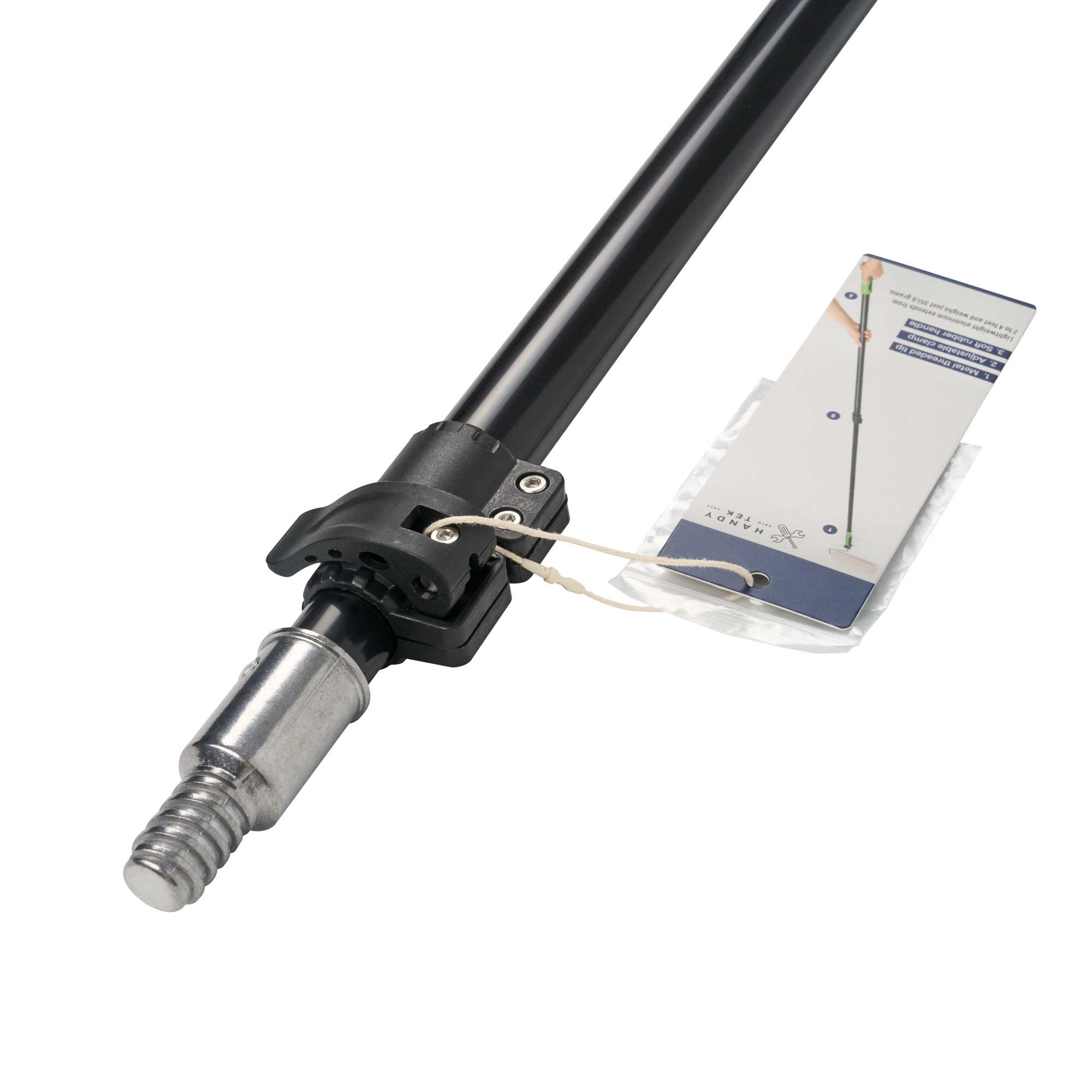 Achieve superior reach and control with our Handy Tek Aluminum Extension Pole. Built with an adjustable clamp, this extension pole extends and locks securely, allowing fast setup and access to hard-to-reach areas during painting or cleaning tasks. Pair this aluminum pole with our Handy Tek roller frames streamline maintenance tasks. Featuring a threaded tip, this extension pole connects securely to paint rollers, squeegees, and other tools for added versatility in foodservice settings. Built from lightweight aluminum, this painting pole is both durable and easy to maneuver, helping reduce arm fatigue during long use. An ergonomic rubber grip on this extension pole provides a secure and comfortable hold for better control. Measuring 29.53 inches in length by 2.17 inches in width by 1.38 inches in height, this pole extends from 2 feet to 4 feet, offering flexible reach for a wide range of tasks. Sold in a 1 count box.
