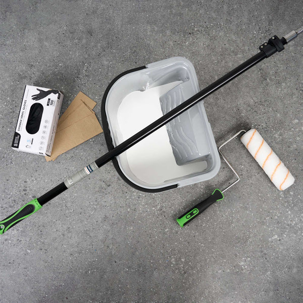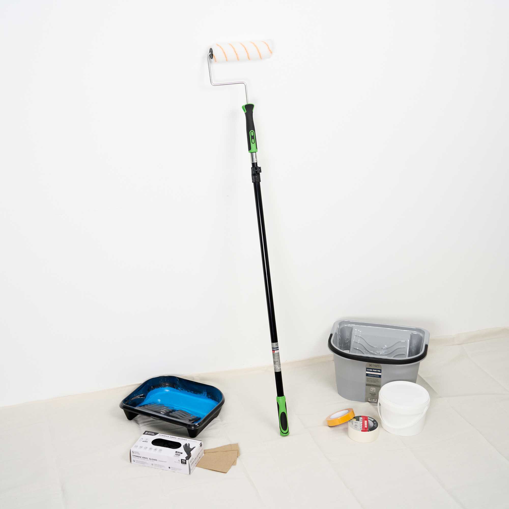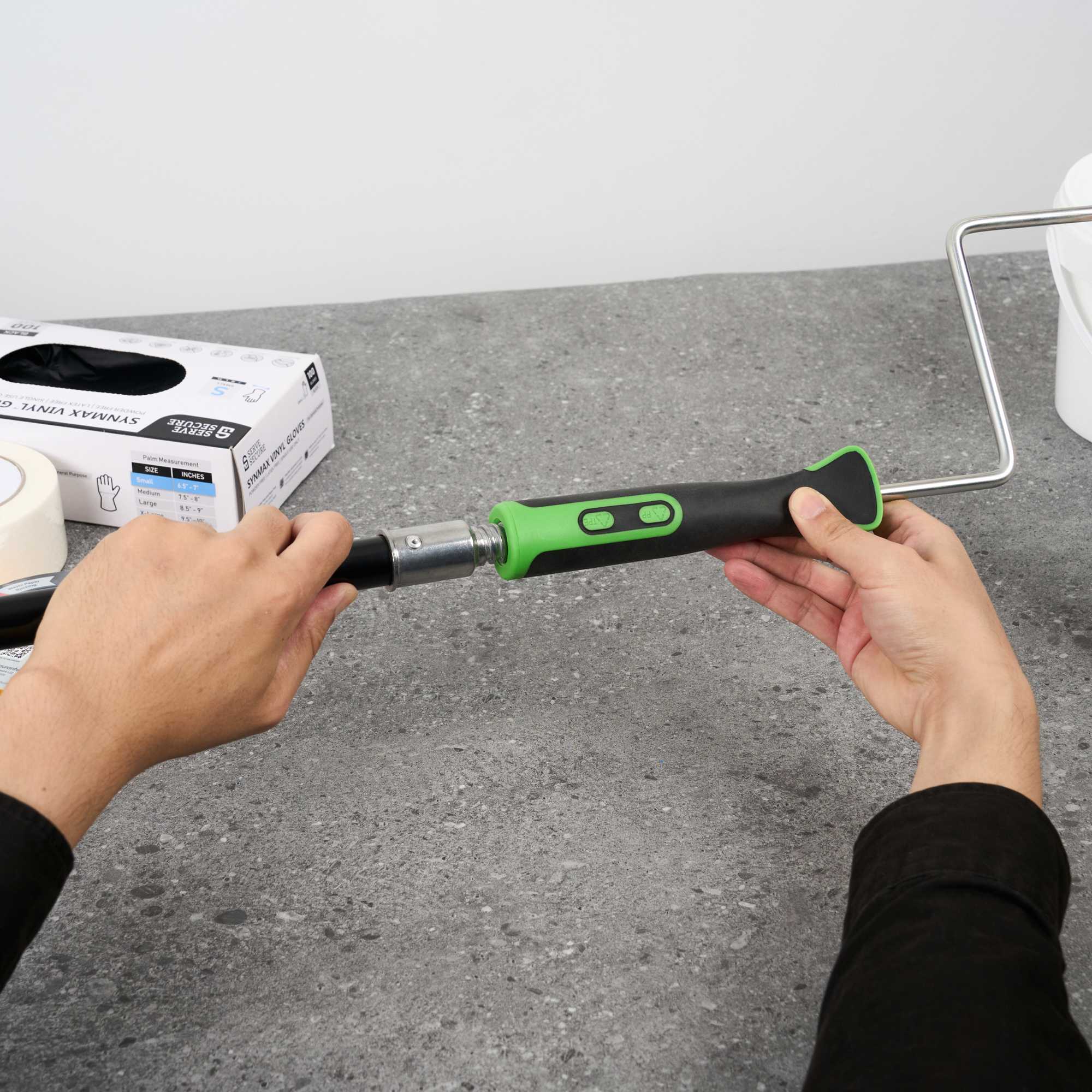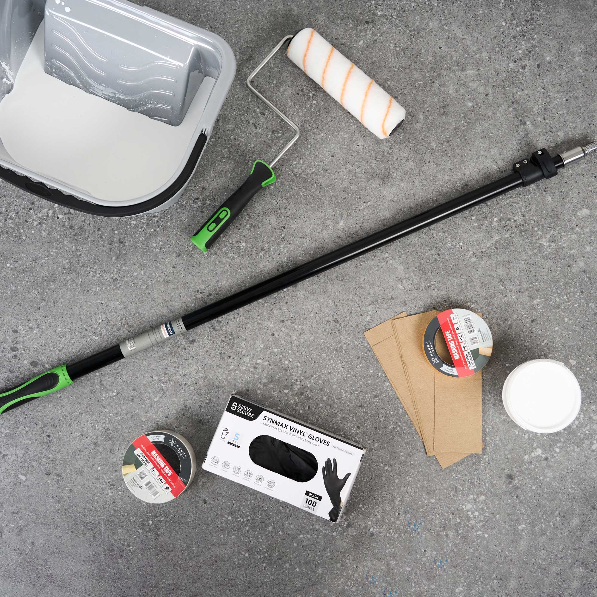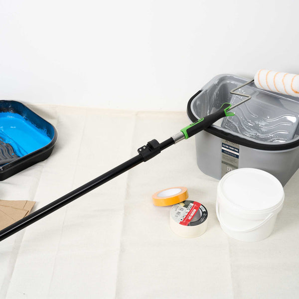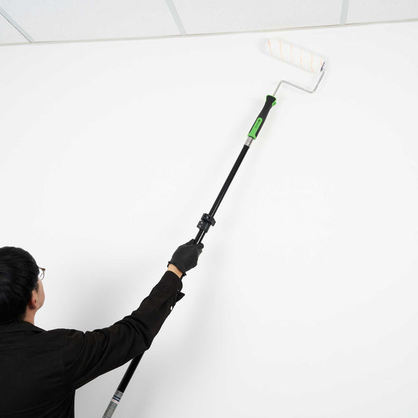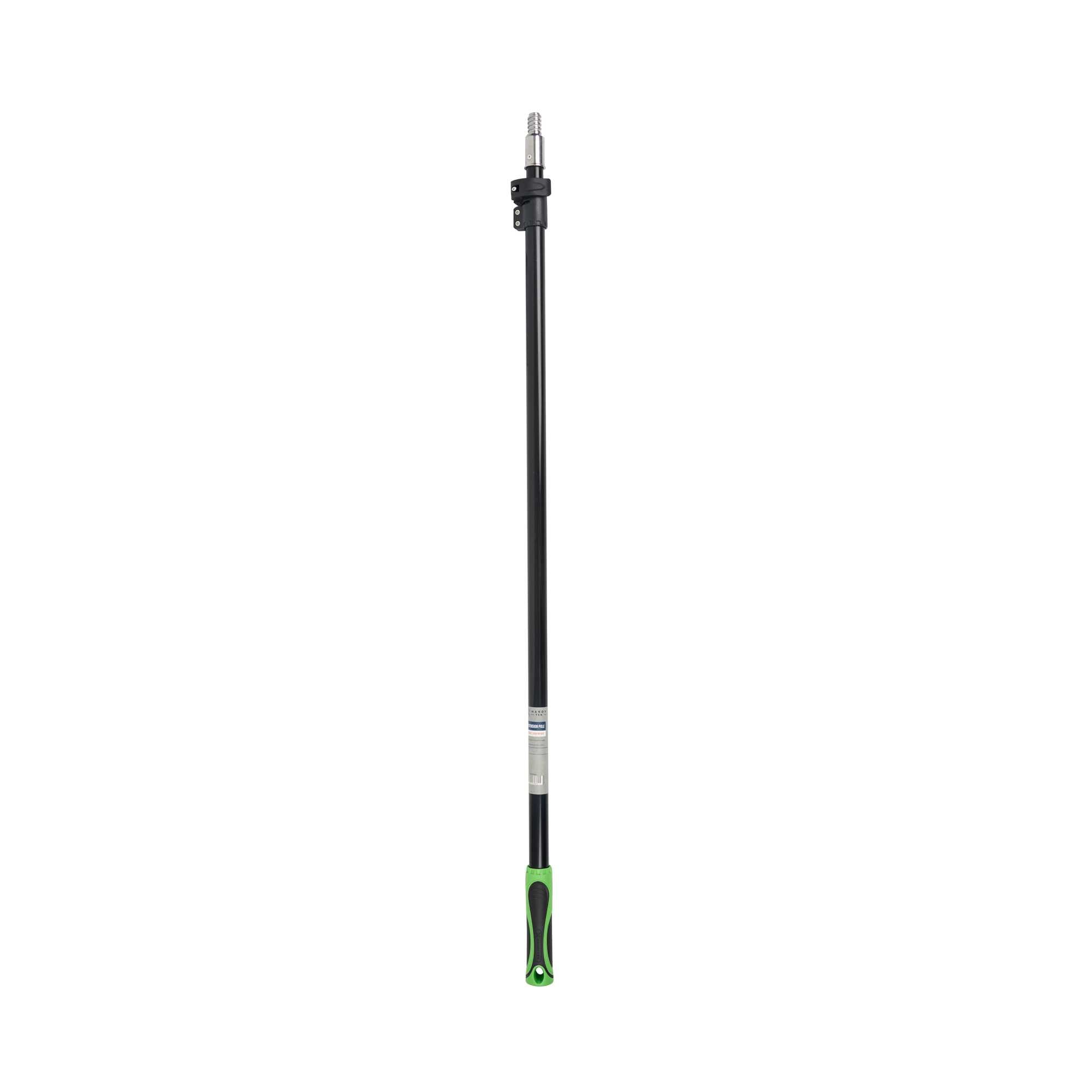 Elevate your restaurant's maintenance and cleaning tasks with our Handy Tek Aluminum Extension Pole. Built with an adjustable clamp, this pole extends and locks quickly, providing secure reach to clean high corners and paint walls with ease. Pair this aluminum pole with our Handy Tek roller frames streamline maintenance tasks. A threaded tip on this extension pole securely connects to paint rollers, squeegees, and other tools, offering unmatched versatility across tasks. Made from lightweight aluminum, this painting pole is durable and reduces arm fatigue during extended use. An ergonomic rubber grip on this extension pole provides a comfortable, slip-resistant hold for better control. Measuring 43.7 inches in length by 2.17 inches in width by 1.38 inches in height, this aluminum pole extends from 3.5 feet to 6.5 feet, offering the reach needed for elevated or hard-to-access spaces.Sold in a 18 count box.