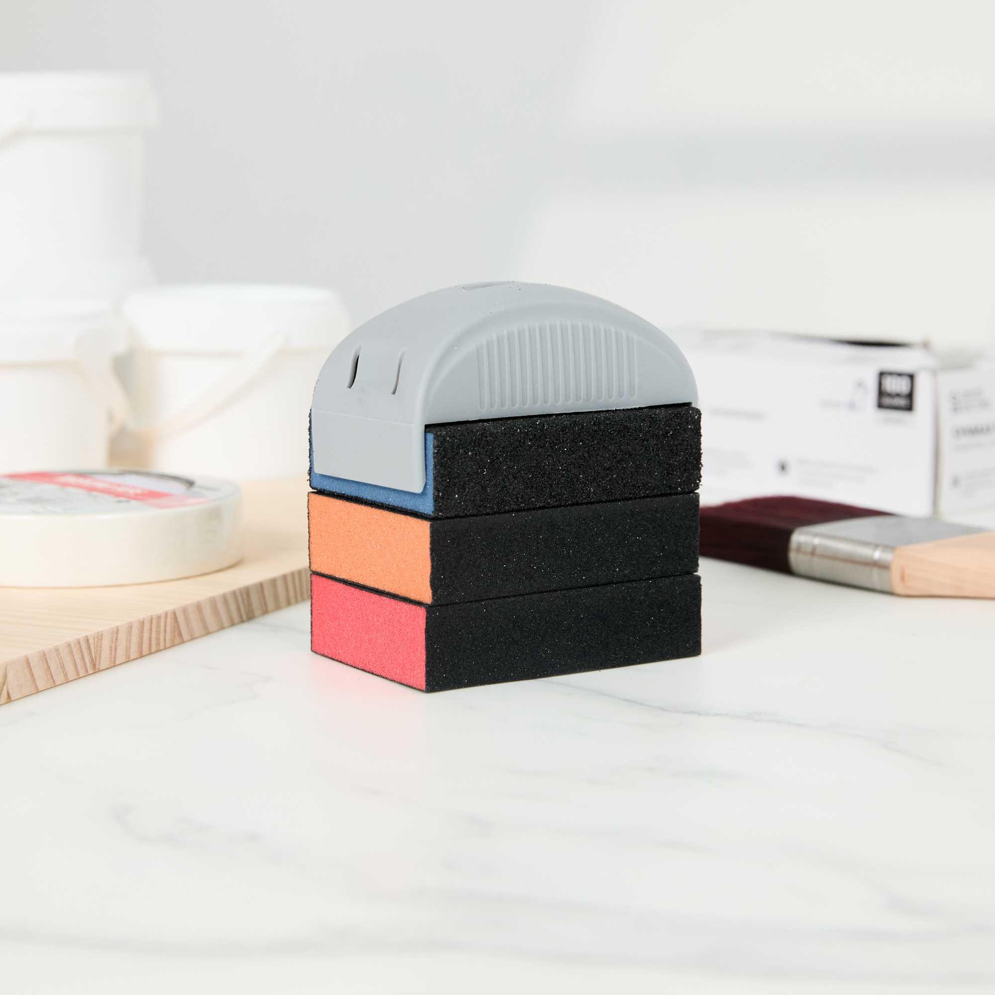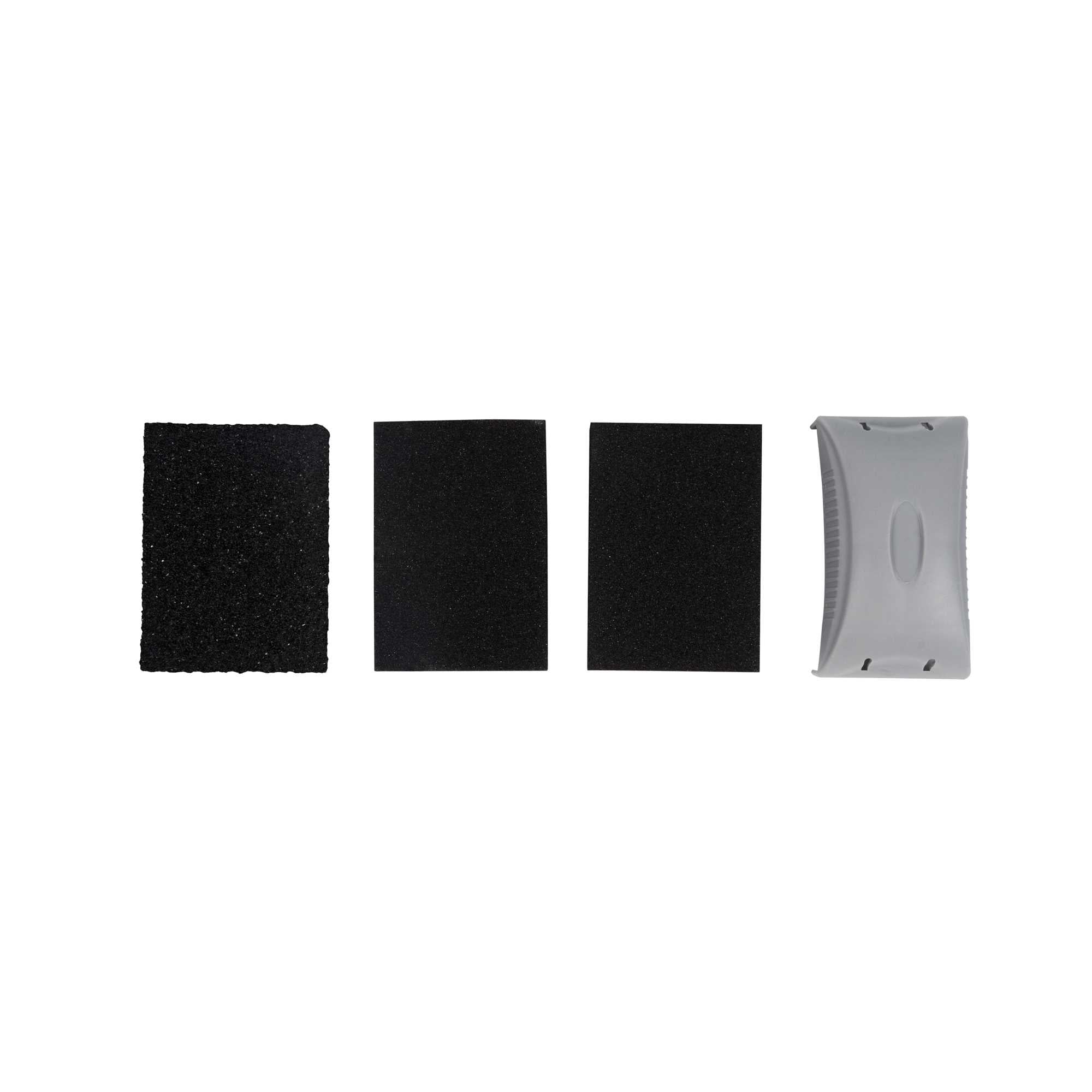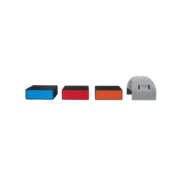 ASSORTED GRIT SANDING SPONGE SET - 4-PIECE, FLAT EDGES, WITH HANDLE