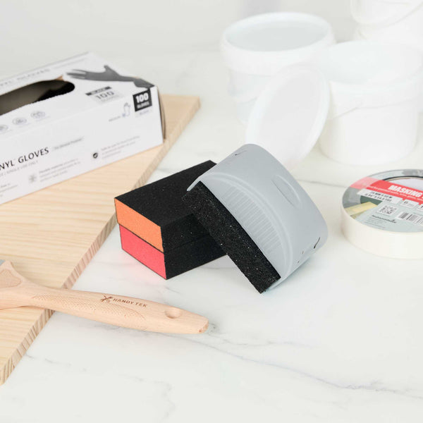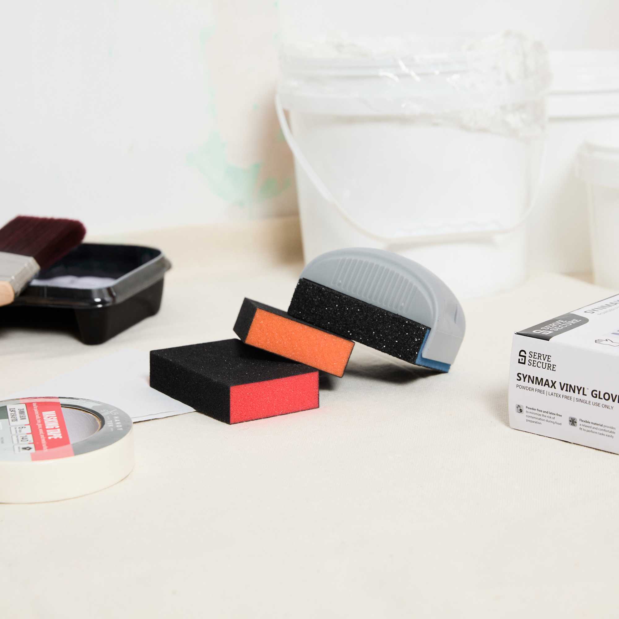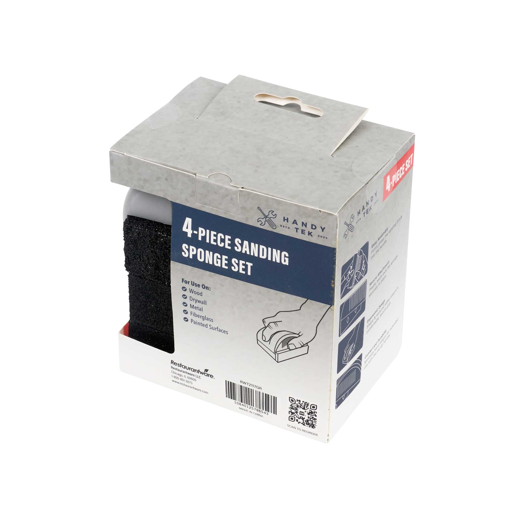 Elevate your sanding projects with our Handy Tek Assorted Grit Sanding Sponge Set, designed to deliver exceptional performance and precision. This complete 4-piece sanding kit features 60, 120, and 180 grit sanding sponges, along with a secure sanding block, providing everything needed for a smooth finish on various surfaces. Suitable for woodworking, drywall, metal, fiberglass, and paint preparation, these abrasive pads tackle rough surfaces with ease. The flat edges on these sanding sponges ensure even sanding along edges and corners, removing uneven spots. These hand sanding blocks reduce hand fatigue and provide better control during extended sessions with their textured, semicircular grip. Built-in plastic teeth on the sanding block firmly hold the sponge in place, ensuring stability and long-term usability. Measuring 4.13 inches in length by 2.87 inches in width by 4.53 inches in height, this sponge set is compact and easy to handle. Sold in a 36 count box.