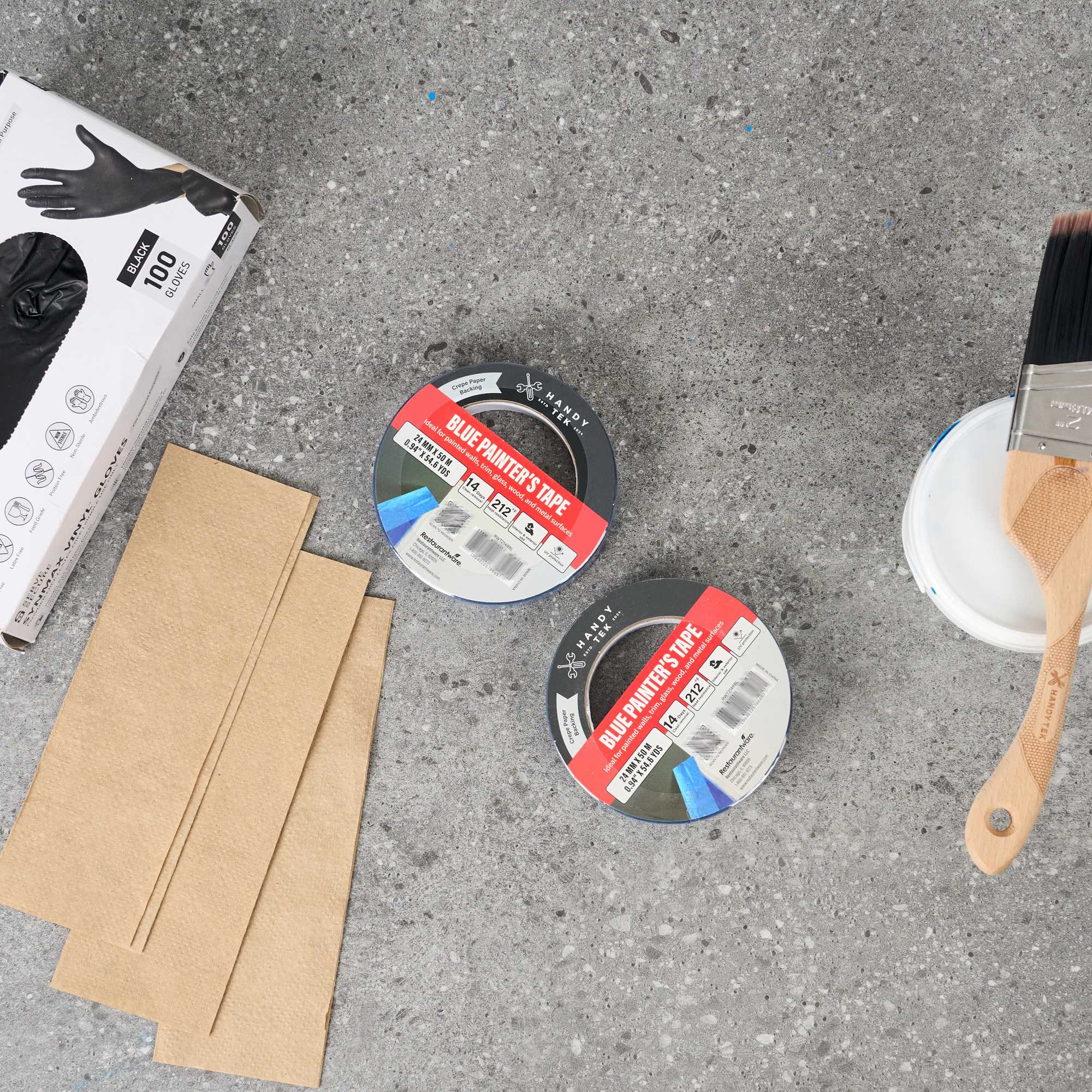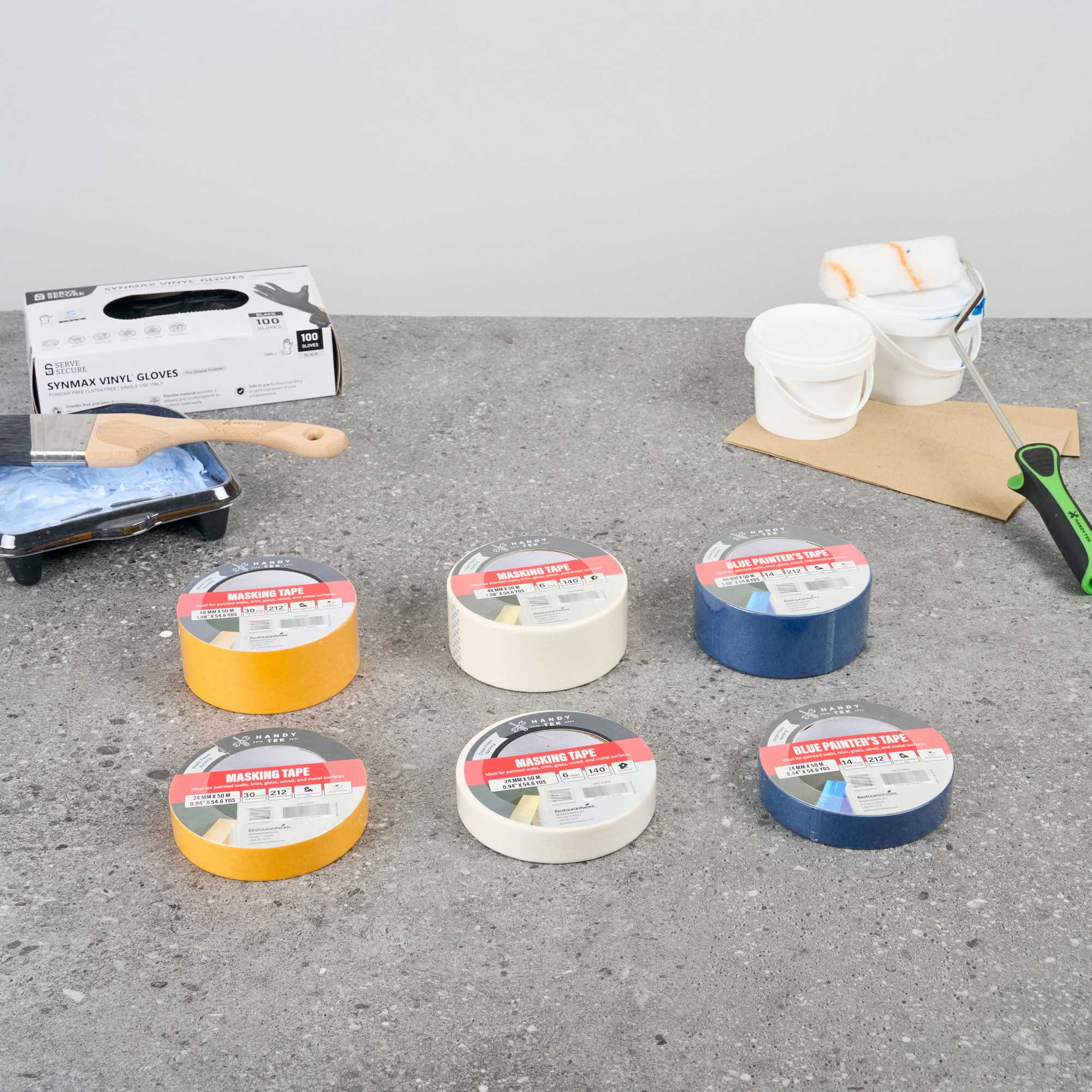 Our Handy Tek Blue Painter's Tape is an excellent masking solution for all your painting needs in the foodservice industry. This versatile adhesive tape bonds effortlessly to metal, glass, wood, making it suitable for a wide range of surfaces in busy restaurant settings. Moisture and heat resistance ensure this painter’s tape provides clean edges and reliable performance during intricate paint jobs. Crafted with a flexible crepe paper backing and rubber adhesive, this masking tape conforms easily to curves and corners for complex applications. Easy to tear by hand, this labeling tape allows quick and accurate placement on any surface. Designed for 6-day clean removal, this tape peels off without residue making it ideal for indoor use. Measuring 1 inch in width, this painter’s tape roll features a total length of 54 yards. Sold in a 1 count box.