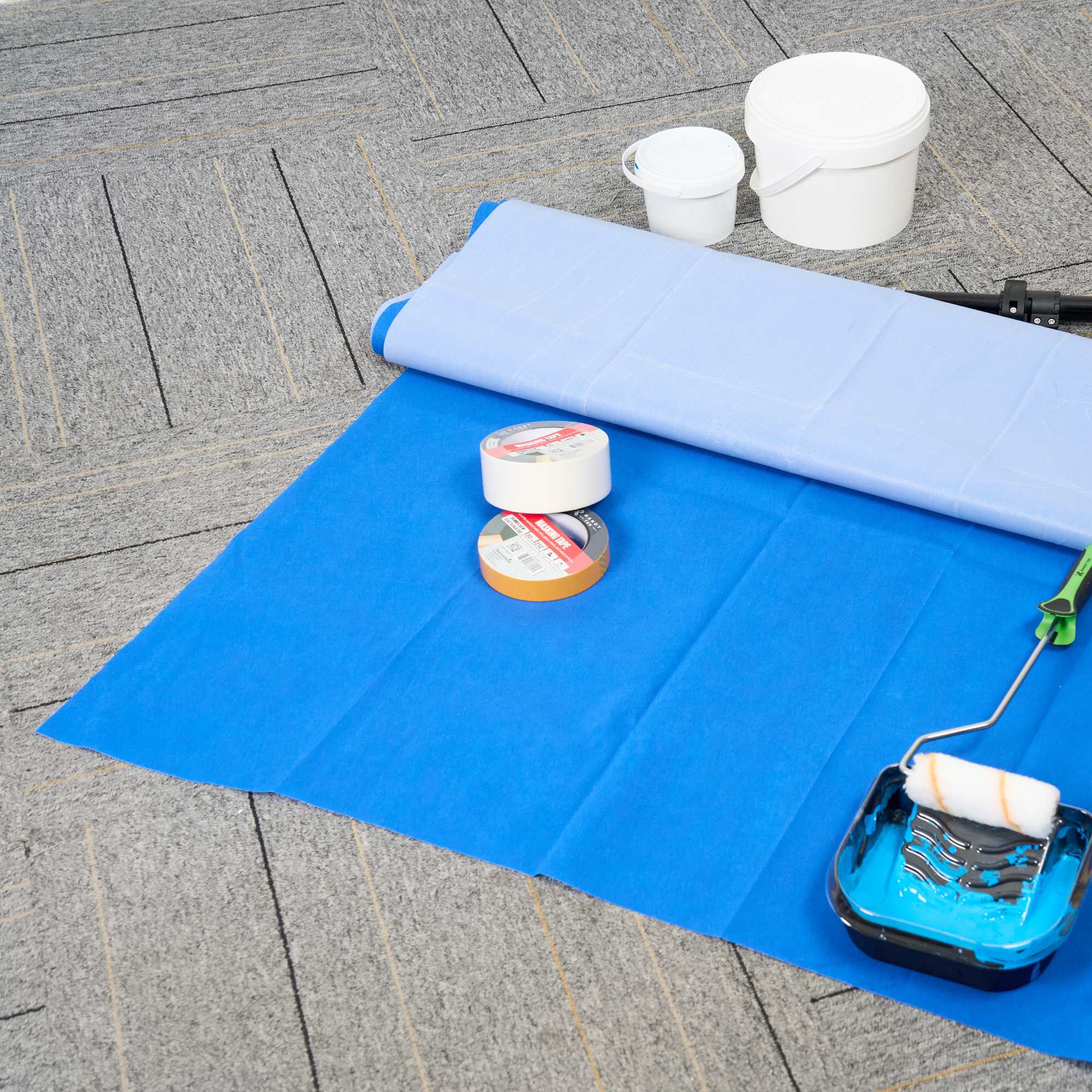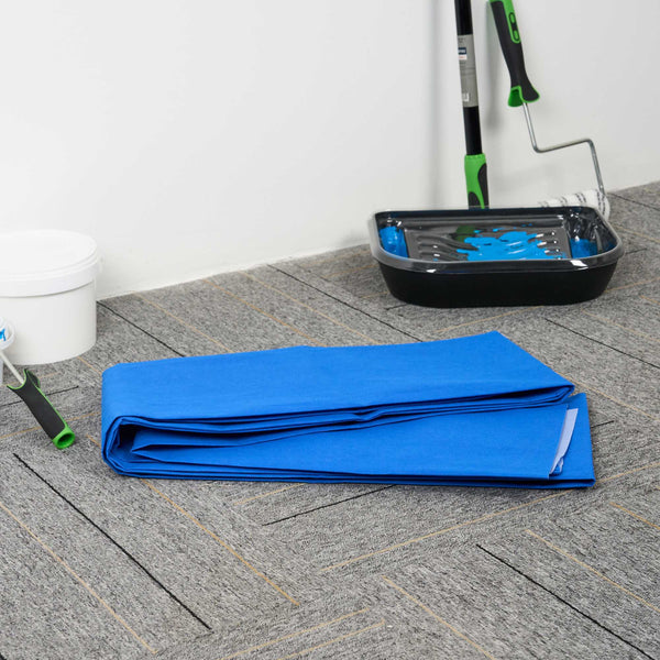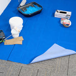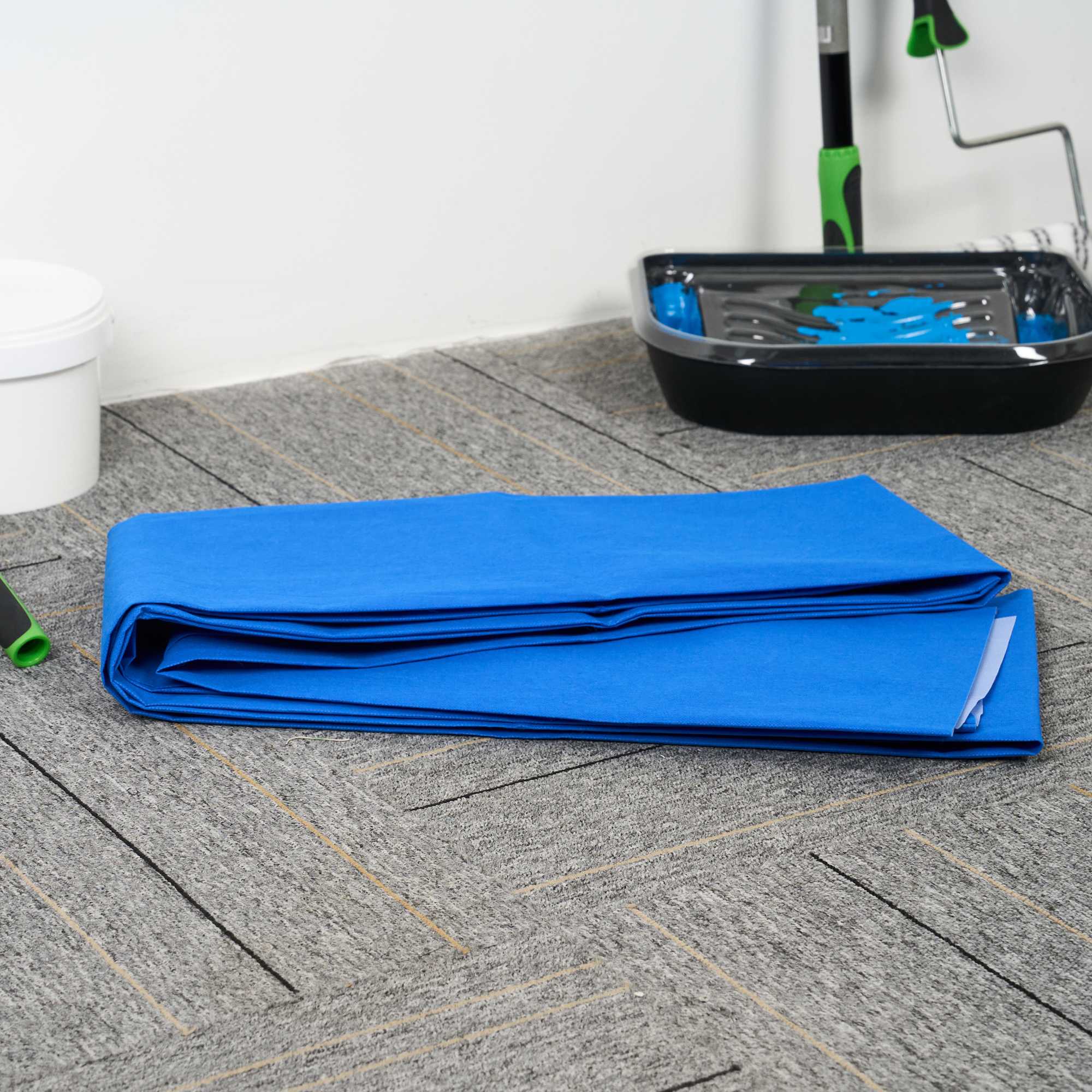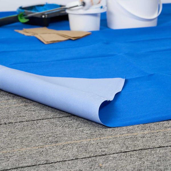 Protect your workspace with our Handy Tek Blue Plastic Drop Cloth, apt for shielding floors, furniture, and other surfaces during painting, plastering, and staining projects. This drop cloth features a dual-layer design with a blue non-woven PP top for a secure, anti-slip grip and a white PE bottom for waterproof protection, ensuring surfaces underneath remain clean and dry. Made from heavy-duty plastic, this blue floor tarp is reusable and tear-resistant, making it a dependable choice for ongoing projects. The textured blue side provides a reliable grip to reduce movement while you work. Measuring 48.03 inches in length by 179.92 inches in width, this protective floor covering provides ample coverage for large areas. Sold in a 12 count box.