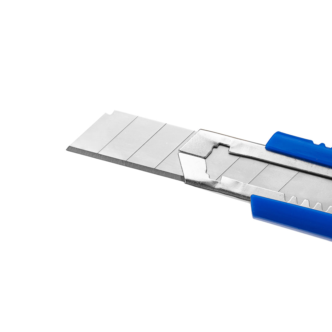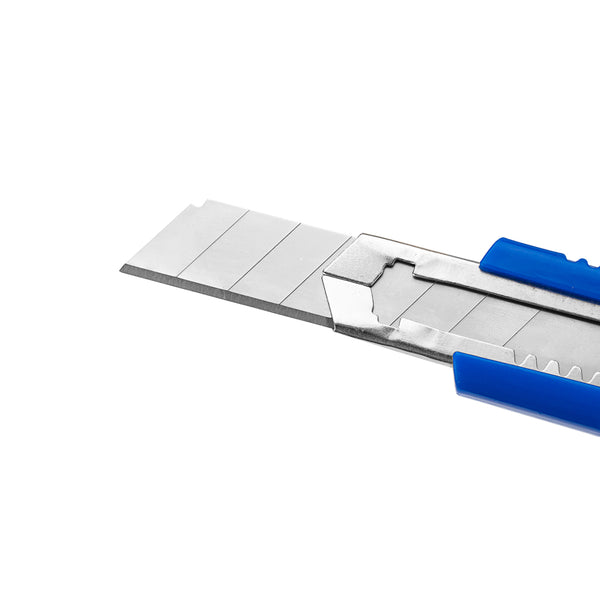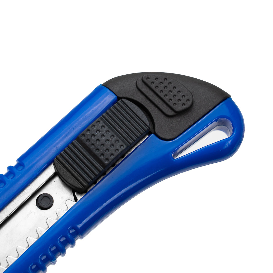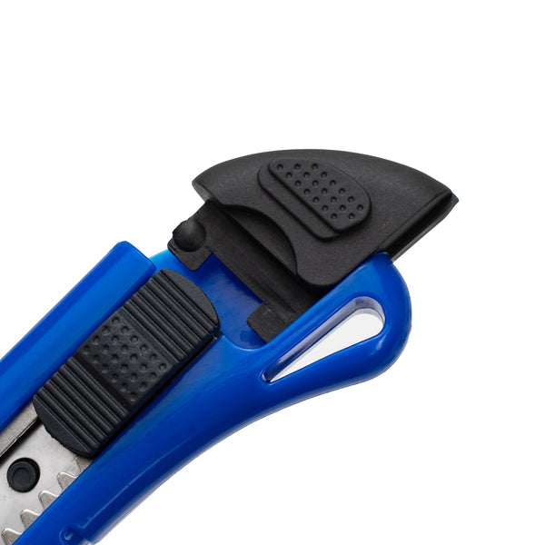 Add an essential tool to your establishment's maintenance supplies with our Handy Tek Blue Utility Knife / Box Cutters. To avoid dangerous accidents, these utility knives have an anti-slip handle that provides a secure and comfortable grip during use. These utility knives are made from heavy-duty plastic and feature an 18-millimeter blade that is built for everyday use at your business. The razor-sharp blade of these box cutter knives is ideal for quickly slicing through packages, letters, and boxes or scoring various materials. These snap on knives have a retractable blade that allows you to adjust the length of the blade to your desired size. Perfect for securing the blade in place, these utility knives are built with a locking mechanism. The blue finish of these box cutter knives makes it easy to find in your toolbox. These snap on knives measure 6.5 inches in length and 1.2 inches in width. Shipped in a 4 count box.