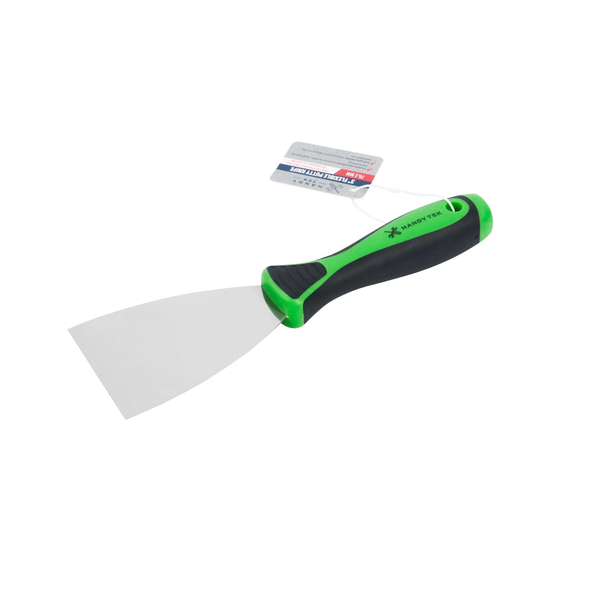Enhance your repair toolkit with our Handy Tek Carbon Steel Putty Knife, expertly crafted for the toughest jobs. This putty knife is made from carbon steel, designed to withstand heavy pressure without bending or breaking, ensuring long-lasting durability for demanding repair tasks. With a flexible blade, this spackling knife allows smooth spreading of putty and fillers, achieving an even, expert finish every time. This scraper tool features a soft grip handle that provides comfort and control, ergonomically designed to reduce hand fatigue during extended use. Precision matters, and this wall repair knife boasts a tapered blade edge, ideal for seamless application of putty, spackle, and joint compounds. Measuring 9.45 inches in length by 2.95 inches in width by 1.18 inches in height, this filling blade is compact and efficient for any repair job. Sold in a 12 count box.