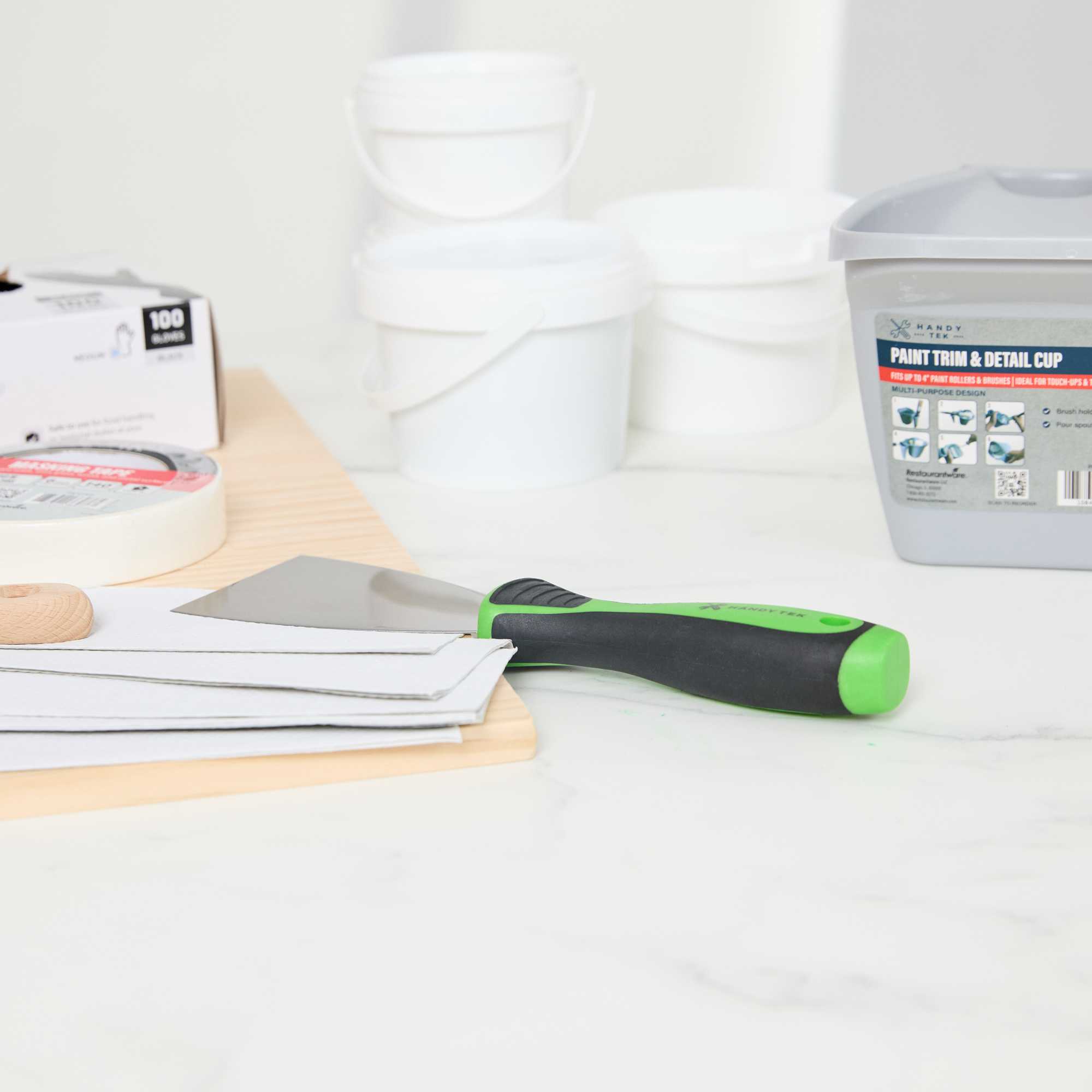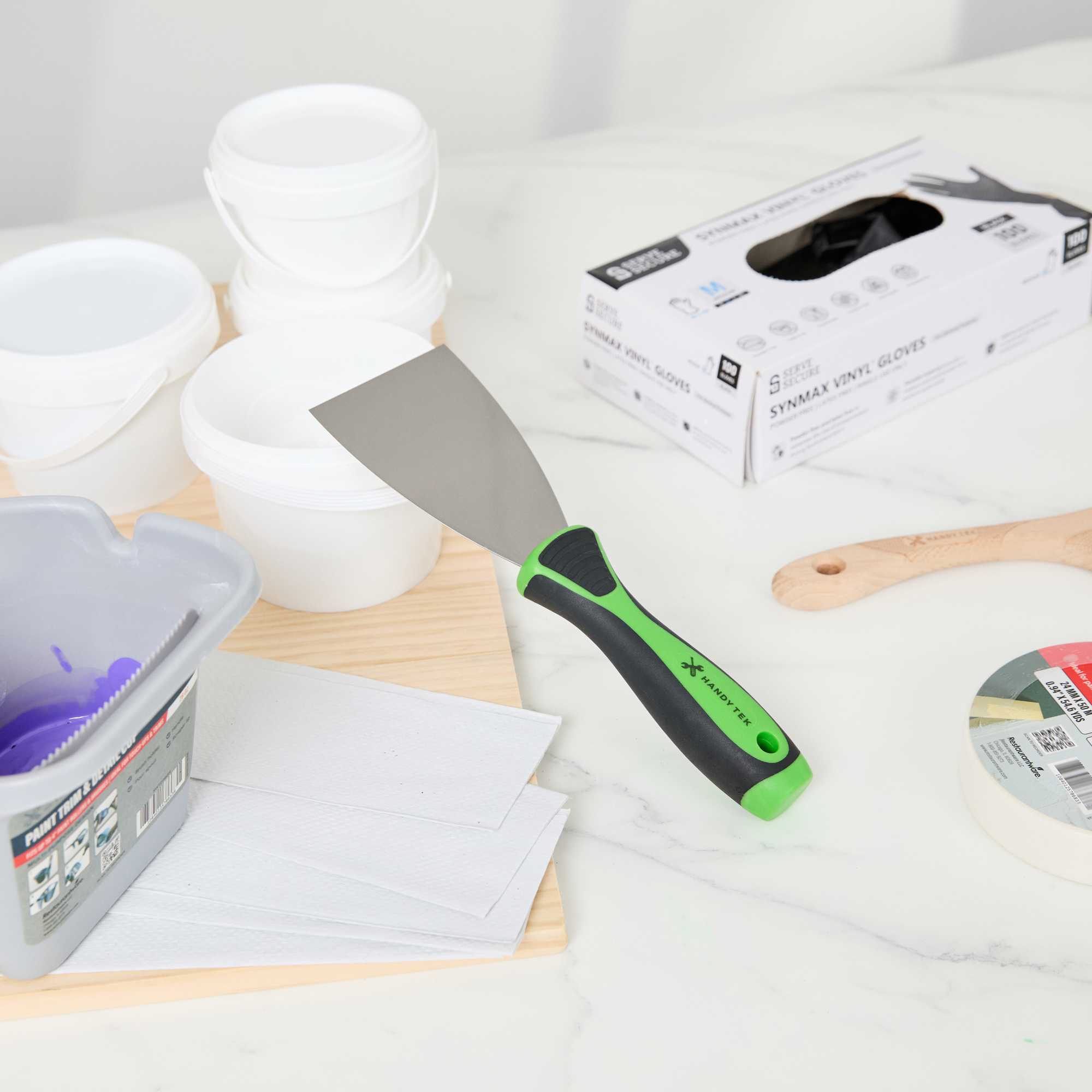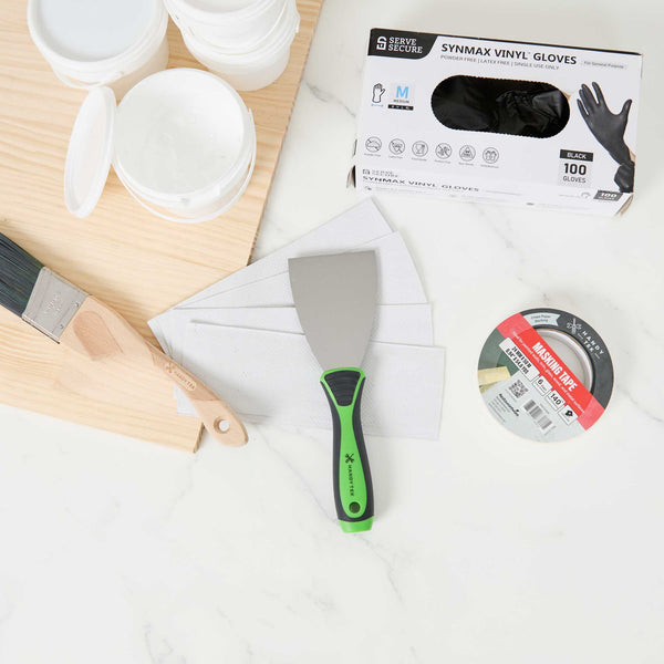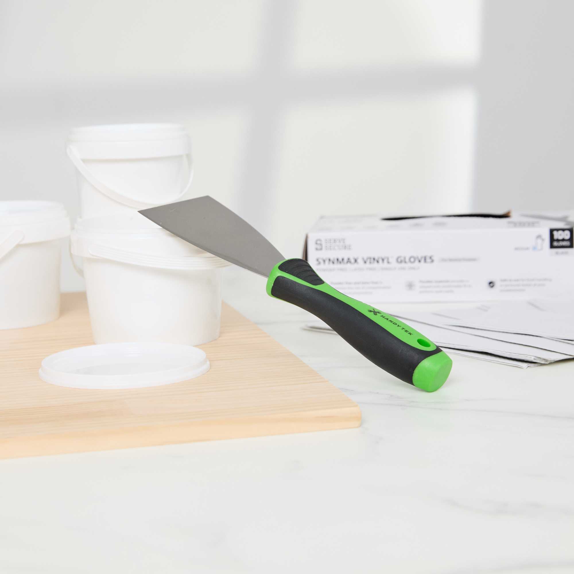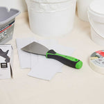 - Flexible blade spreads putty smoothly for an even professional finish