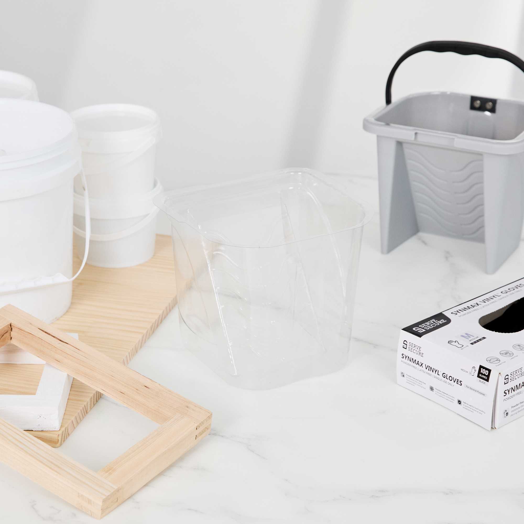 Ensure a tidy painting experience with our Handy Tek Clear Plastic Paint Pail Liners. These pail inserts are specifically designed to fit securely inside the Handy Tek Paint Bucket (SKU: RWT2135GR), making painting projects cleaner and more efficient. With these disposable pail liners, cleanup is a breeze, just remove and discard them after use to eliminate scrubbing. Made from tear-resistant material, these paint pail liners are durable enough to hold paint without leaking or tearing, ensuring a smooth painting process. Use these liners during apartment turnovers or large property repaints to stay efficient. Each of these paint can liners boasts a capacity of 2.35 quarts and measures 7.64 inches in length by 6.89 inches in width by 6.54 inches in height. Sold in a 120 count box.
