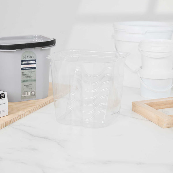 Ensure a tidy painting experience with our Handy Tek Clear Plastic Paint Pail Liners. These pail inserts are specifically designed to fit securely inside the Handy Tek Paint Bucket (SKU: RWT2135GR), making painting projects cleaner and more efficient. With these disposable pail liners, cleanup is a breeze, just remove and discard them after use to eliminate scrubbing. Made from tear-resistant material, these paint pail liners are durable enough to hold paint without leaking or tearing, ensuring a smooth painting process. Use these liners during apartment turnovers or large property repaints to stay efficient. Each of these paint can liners boasts a capacity of 2.35 quarts and measures 7.64 inches in length by 6.89 inches in width by 6.54 inches in height. Sold in a 5 count box.
