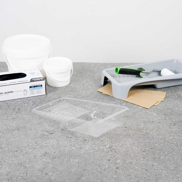 Ensure a flawless painting experience with our Handy Tek Clear Plastic Paint Tray Liners. These painting tray inserts make painting easier, cleaner, and more efficient by fitting securely into the Handy Tek paint tray (SKU: RWT2132GR), stopping slipping or shifting during use. These plastic paint trays are ideal for multi-room renovations where consistent performance is needed across spaces. Crafted from tear-resistant material, these paint tray liners hold paint securely without leaking or tearing, even under heavy use. Cleanup is a breeze with these disposable paint liners, simply remove and toss them after use to save time and reduce mess. Each paint roller tray liner has a capacity of 1.54 quarts, and measures 13.78 inches in length by 6.69 inches in width by 2.36 inches in height. Sold in a 5 count box.