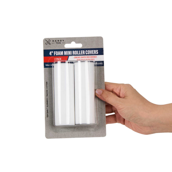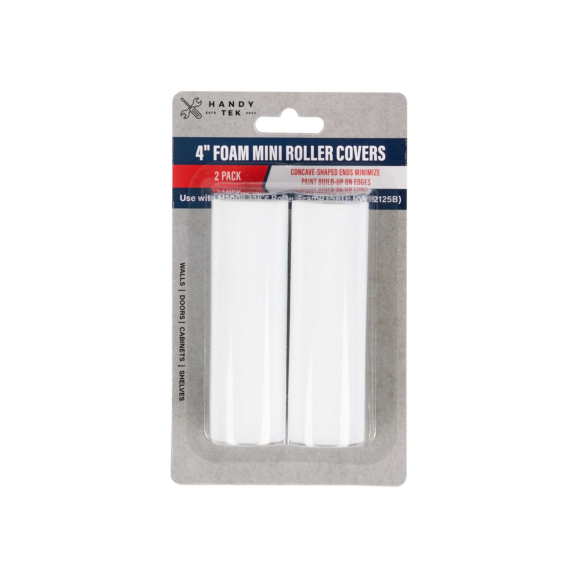 Achieve a flawless finish with our Handy Tek Foam Mini Roller Covers, excellent for any painting project. These high-density foam paint roller covers deliver a smooth, even finish with minimal bubbles, making them ideal for high-gloss and semi-gloss paints. Designed for compatibility, these wall paint rollers pair with the roller frame (SKU: RWT2125B) for easy, efficient application. Crafted from absorbent foam, these mini roller covers hold more paint for even distribution, reducing streaks and improving coverage. Their concave end design makes them great for painting corners, edges, and tight areas. Additionally, these reusable roller covers are easy to clean and provide lasting performance. Each roller cover measures 4.25 inches in length by 1.38 inches in width by 1.38 inches in height. Sold in a 24 count box.