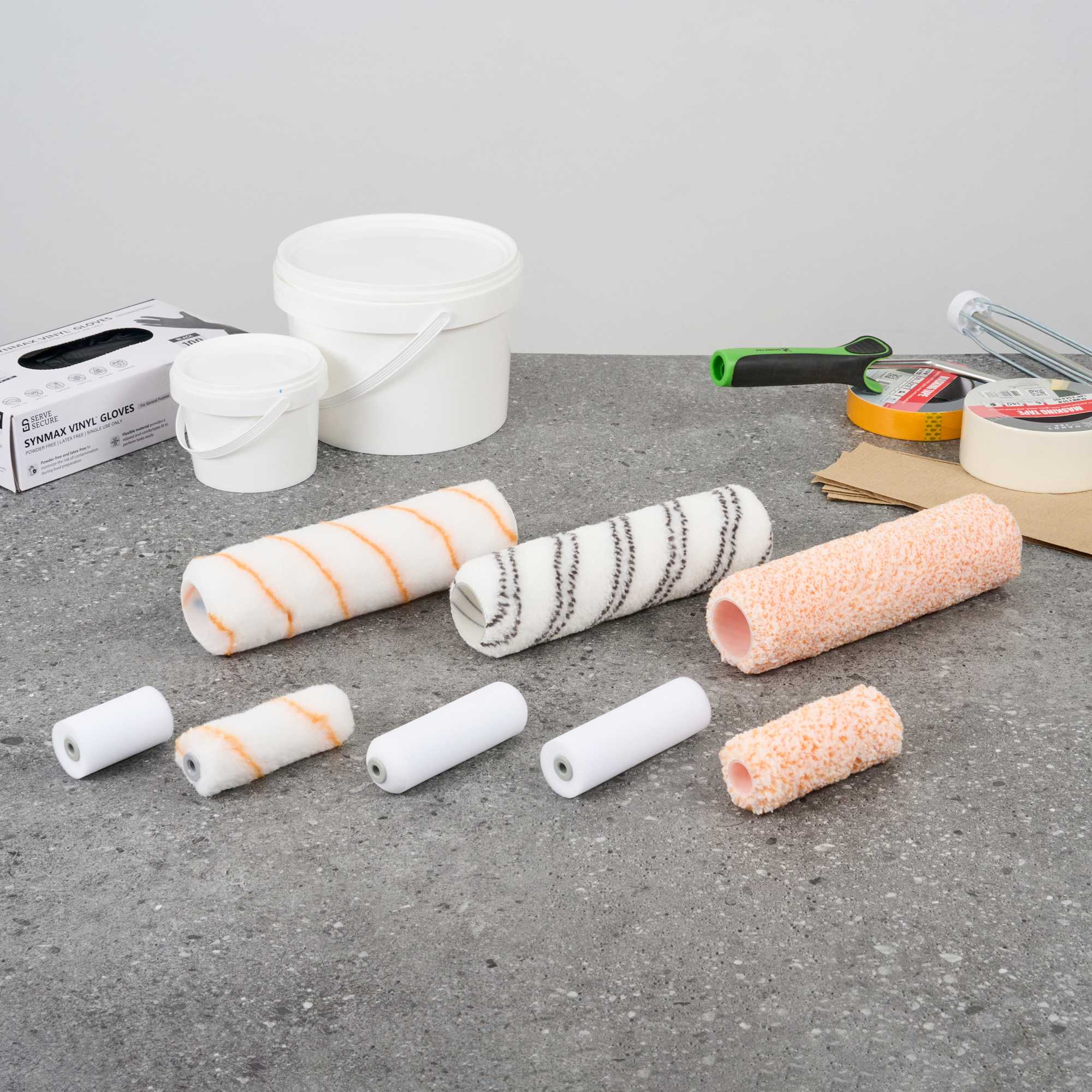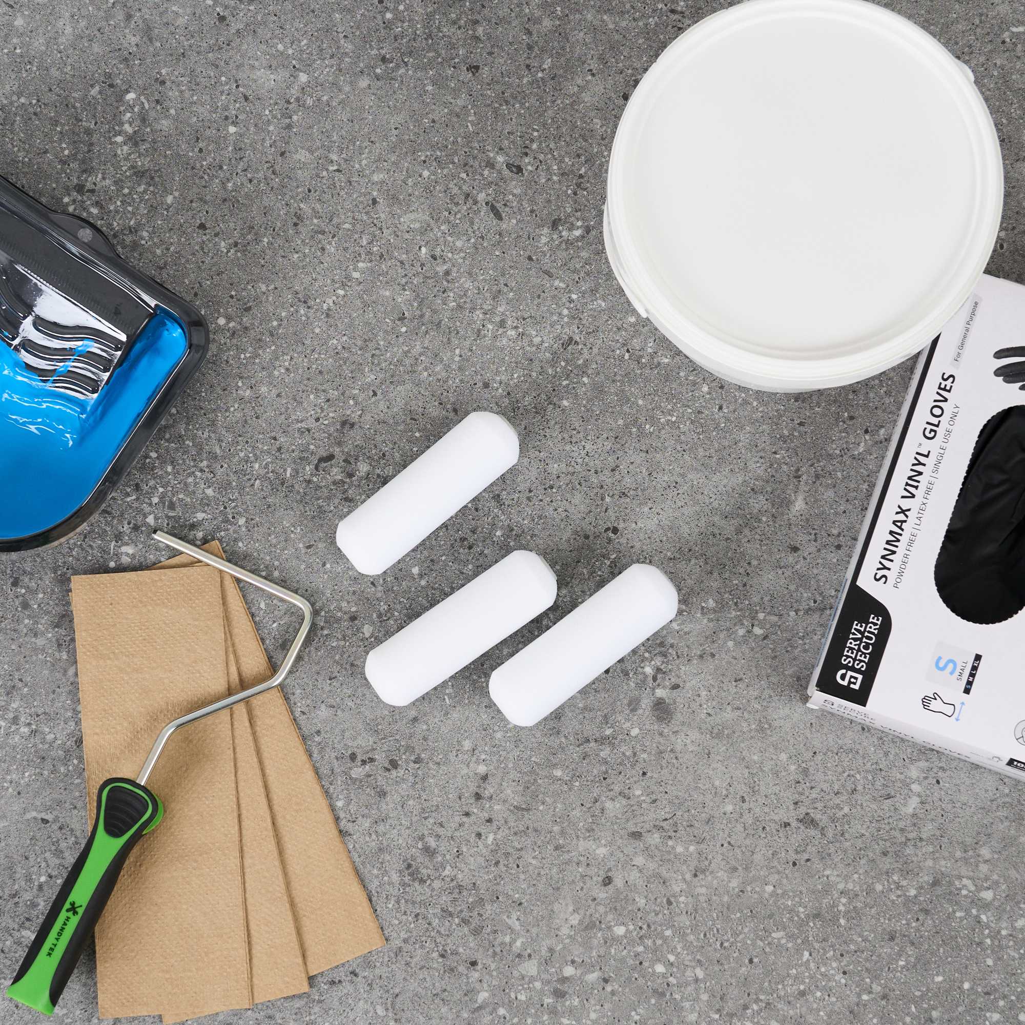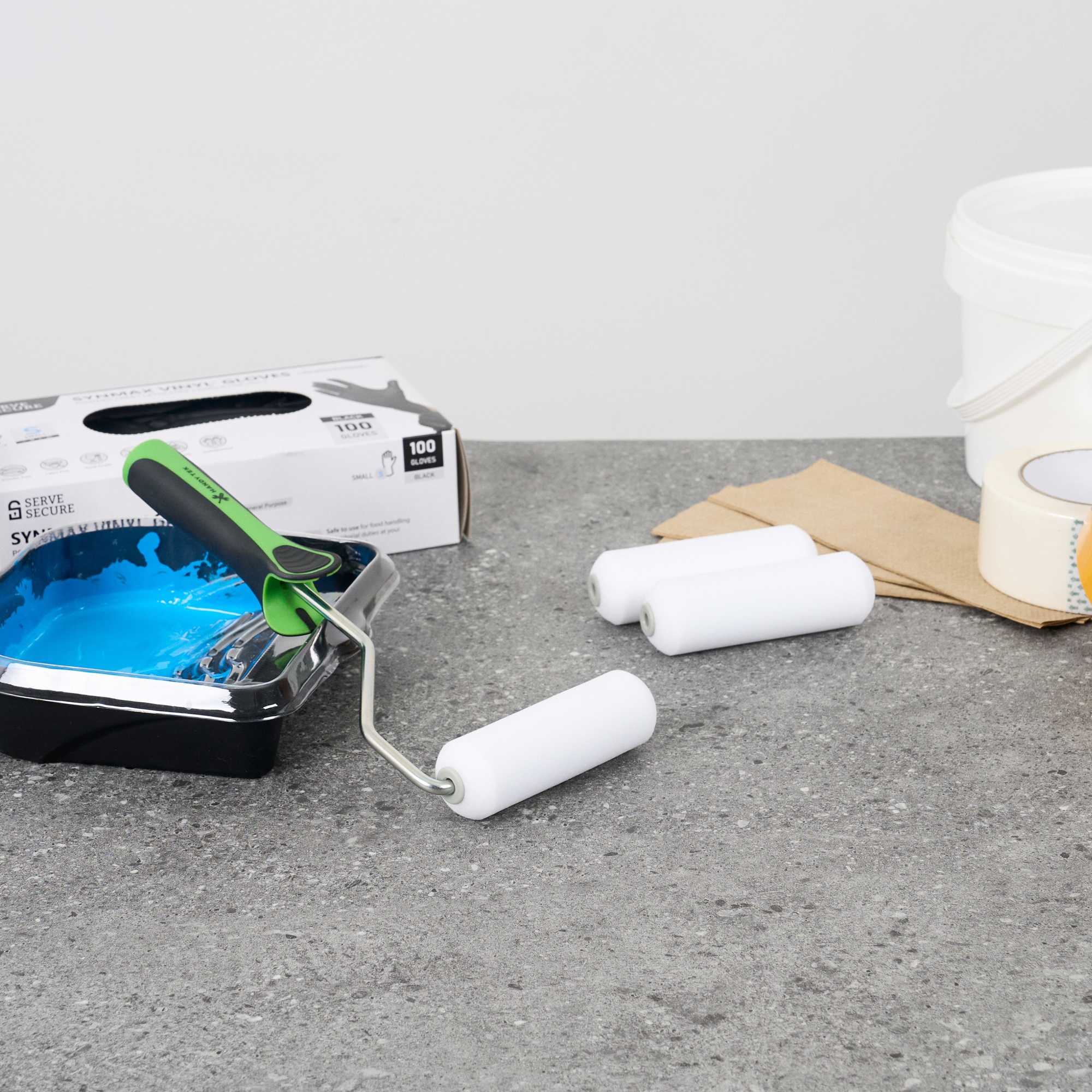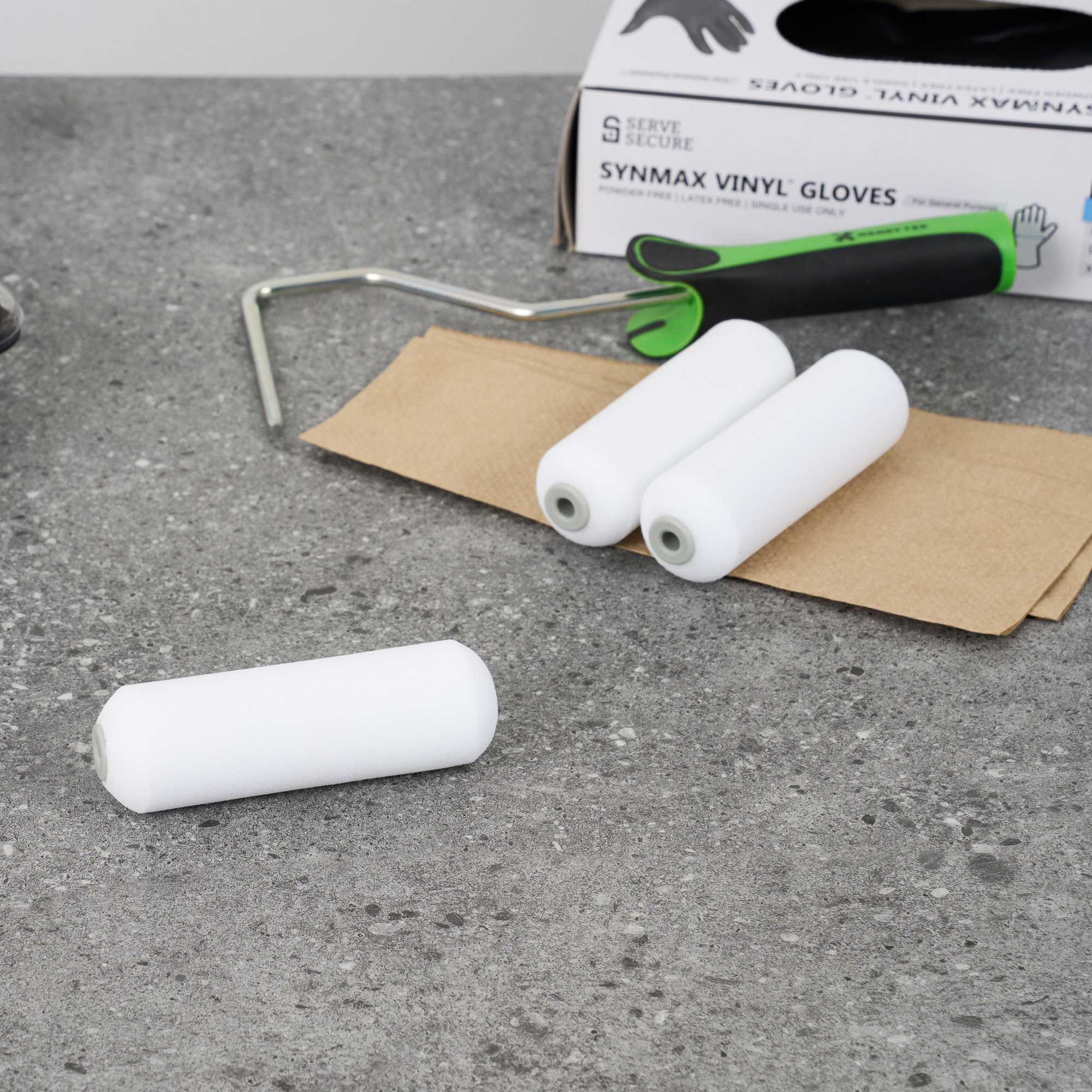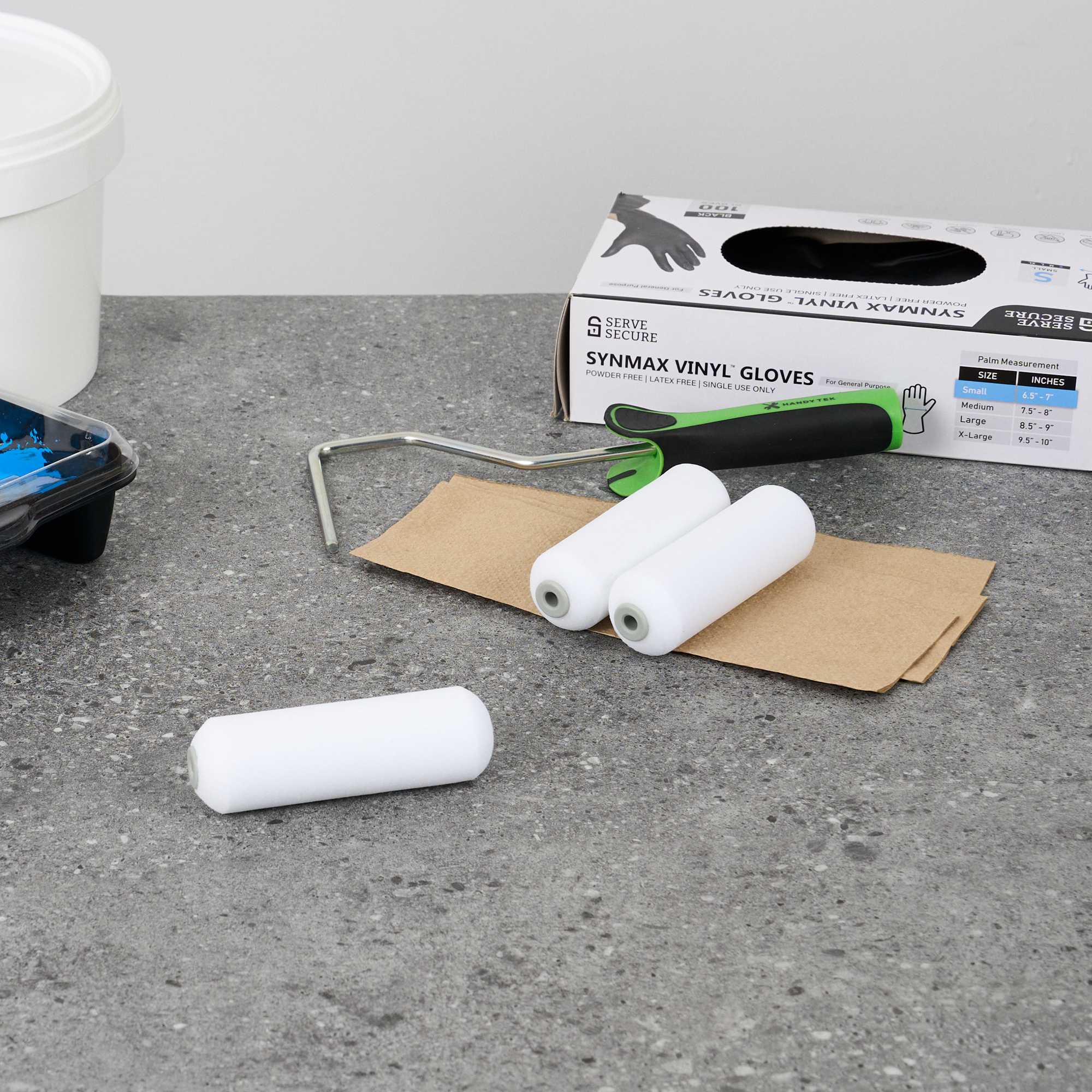 Achieve a smooth, even finish on any surface using our Handy Tek Foam Mini Roller Covers. High-density foam roller covers deliver a spray-like finish with minimal bubbles, ideal for high-gloss and semi-gloss paints. A lint-free, shed-resistant design ensures each foam roller cover applies cleanly without imperfections. Thermo-bonded design helps the paint roller cover maintain shape and consistent performance. Pair the foam paint roller cover with our roller frame (SKU: RWT2125B) for quick and secure setup. Absorbent roller sheaths hold more paint to reduce streaks and cut down on touch-ups. Solvent-resistant wall paint roller covers work with both oil- and water-based paints for added versatility. Perfect for trims, frames, doors, and walls, each foam applicator cover offers reliable precision. Measuring 4.33 inches in length by 1.34 inches in width by 1.34 inches in height, each paint roller cover is compact and efficient. Sold in a 240 count box.