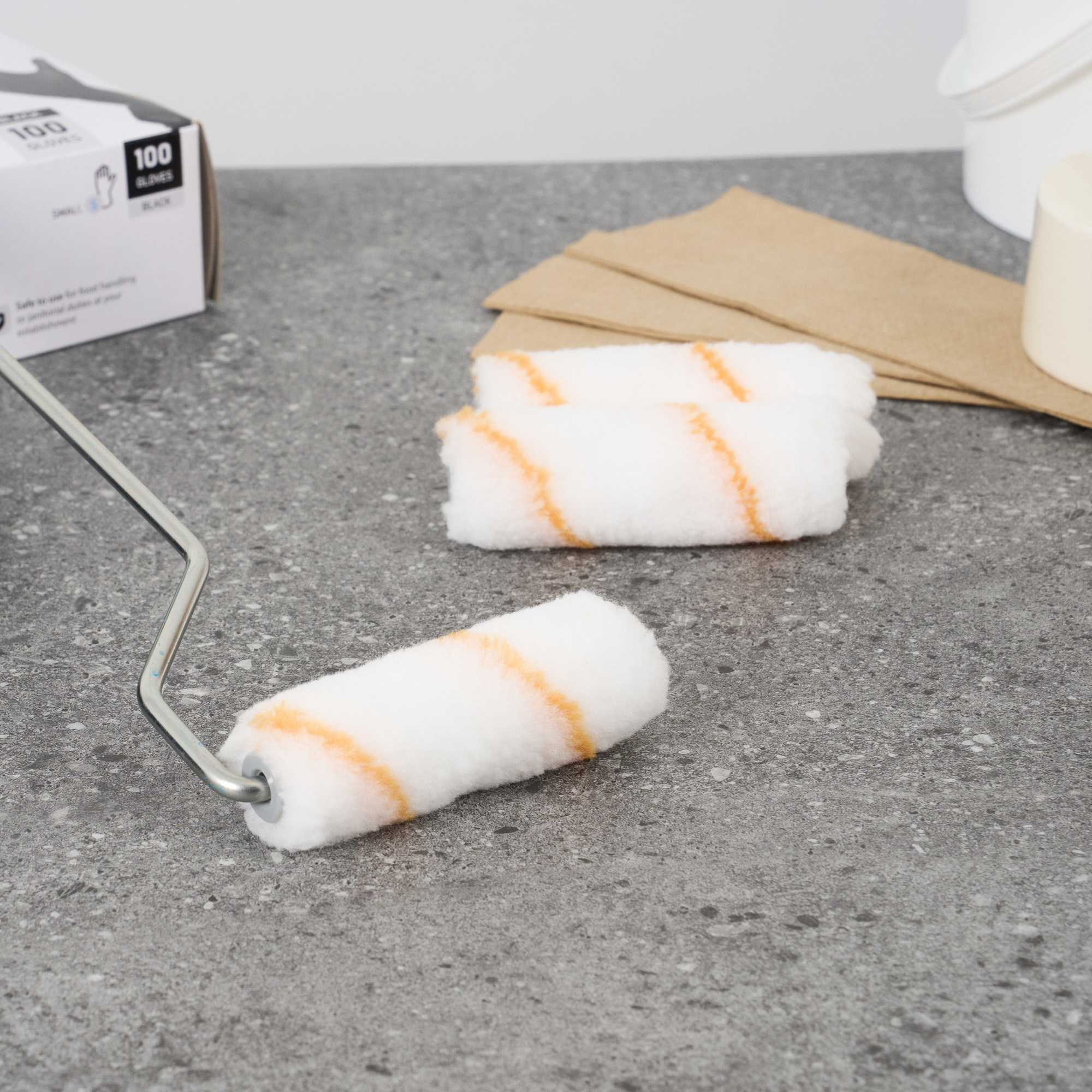 Transform every stroke with our Handy Tek Knit Roller Covers. The shed-resistant design of these paint roller covers prevents fiber loss, while their lint-free surface ensures a clean and polished application. Carefully engineered for compatibility, these knit roller covers pair with the roller frame (SKU: RWT2123B) for easy interior use. Crafted with absorbent knit fabric and thermo-bonded technology, these roller sheaths hold more paint and retain shape for consistent results. Featuring a 1/2 inch nap, these wall paint roller covers are ideal for smooth to semi-smooth surfaces like ceilings and drywall. Designed for interiors, these paint applicator covers are compatible with all paint types for broad usability. Their compact size makes these roller covers perfect for painting corners and edges with precision. Measuring 4.02 inches in length by 1.38 inches in width by 1.38 inches in height, these roller covers suit a variety of detailed tasks. Sold in a 120 count box.