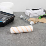 Achieve professional results with our Handy Tek Knit Roller Cover, designed to deliver smooth, consistent finishes on every job. Built with shed-resistant properties, this knit roller cover prevents fiber loss during use. Using thermo-bonded technology, this wall paint roller cover ensures durability and minimizes deformation over time. This roller cover pairs effortlessly with Handy Tek roller frames (SKU: RWT2123B & RWT2158B) for quick setup. This paint roller cover features a lint-free design for clean application. Made from absorbent knit fabric, this paint roller cover holds more paint to reduce drips and improve coverage. Ideal for interior use, this roller sheath works with all paint types on smooth to semi-smooth surfaces. Measuring 9.06 inches in length by 2.36 inches in width by 2.36 inches in height, this applicator cover fits a variety of painting needs. Sold in a 1 count box.