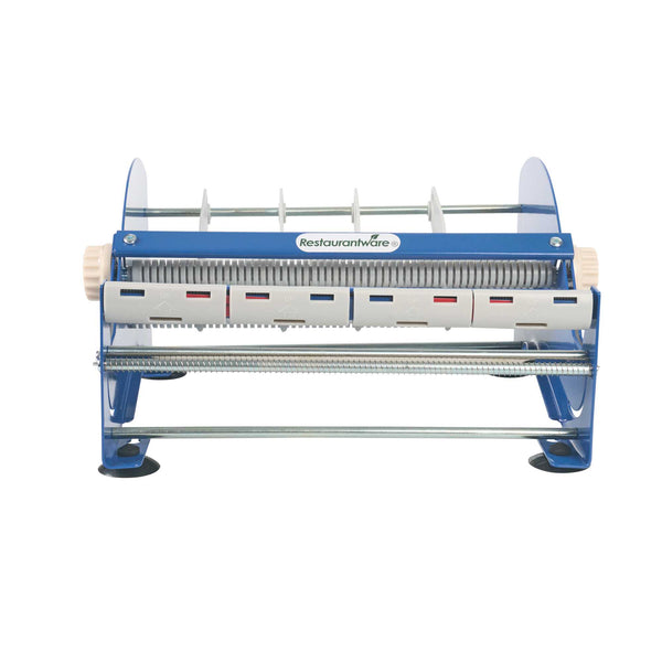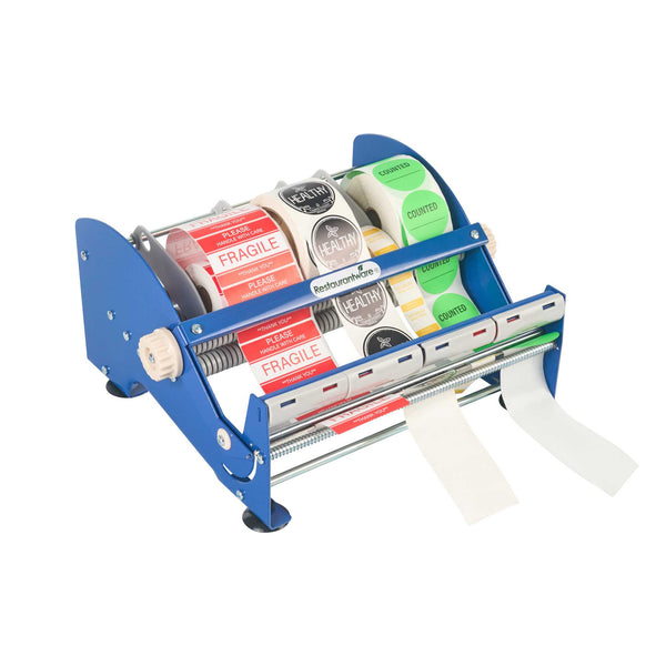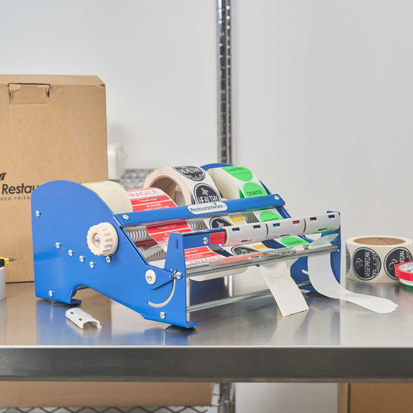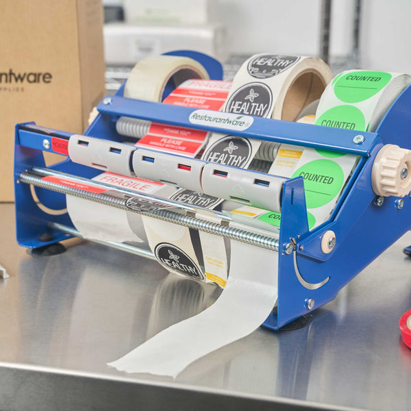 Enhance your labeling efficiency with a stable and versatile solution. The Handy Tek Non-Skid Desktop Label Dispenser offers a non-skid base that ensures stability during label application. This desktop label dispenser, measuring 14.6 inches in length, is crafted from durable steel, providing a robust and long-lasting solution for any foodservice or office setting. With adjustable core capabilities, it fits varied roll sizes, offering flexibility and accommodating rolls up to 6 inches in diameter, making it an ideal choice as a label tape dispenser. Its ability to handle a 12-inch roll width allows for efficient management of extensive labeling tasks, perfect for streamlining food packaging operations. The serrated blade ensures clean cuts every time, increasing reliability and precision in your labeling processes. Trust this food packaging label dispenser to keep your workspace organized and efficient. Each order includes 1 Handy Tek Non-Skid Desktop Label Dispenser.