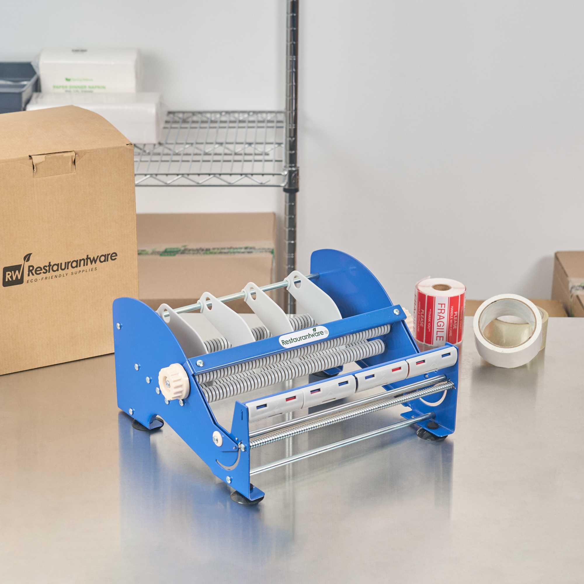 Enhance your labeling efficiency with a stable and versatile solution. The Handy Tek Non-Skid Desktop Label Dispenser offers a non-skid base that ensures stability during label application. This desktop label dispenser, measuring 14.6 inches in length, is crafted from durable steel, providing a robust and long-lasting solution for any foodservice or office setting. With adjustable core capabilities, it fits varied roll sizes, offering flexibility and accommodating rolls up to 6 inches in diameter, making it an ideal choice as a label tape dispenser. Its ability to handle a 12-inch roll width allows for efficient management of extensive labeling tasks, perfect for streamlining food packaging operations. The serrated blade ensures clean cuts every time, increasing reliability and precision in your labeling processes. Trust this food packaging label dispenser to keep your workspace organized and efficient. Each order includes 3 Handy Tek Non-Skid Desktop Label Dispensers.