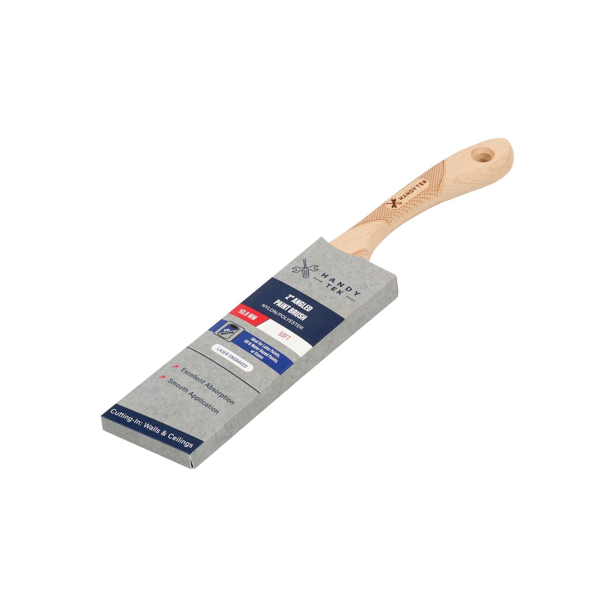 Ensure smooth and efficient painting tasks with ease. The Handy Tek Ergonomic Gray Wood Angled Paint Brush features a specially formulated blend of nylon and polyester fibers, ensuring a smooth paint application every time. This professional paint brush offers an impressive high paint holding capacity, reducing the need for frequent refills and enhancing productivity. With its ergonomic design and dimensions of 11.8 inches by 2 inches by 0.7 inches, this brush provides comfortable handling for extended use. The easy cleaning feature minimizes downtime between tasks, allowing you to quickly transition from one project to another. Ideal for all types of paints, this versatile nylon polyester paint brush is a must-have tool for both seasoned painters and DIY enthusiasts. Elevate your painting projects with the reliability and precision of this exceptional angled paint brush. Sold in a 1 count box.