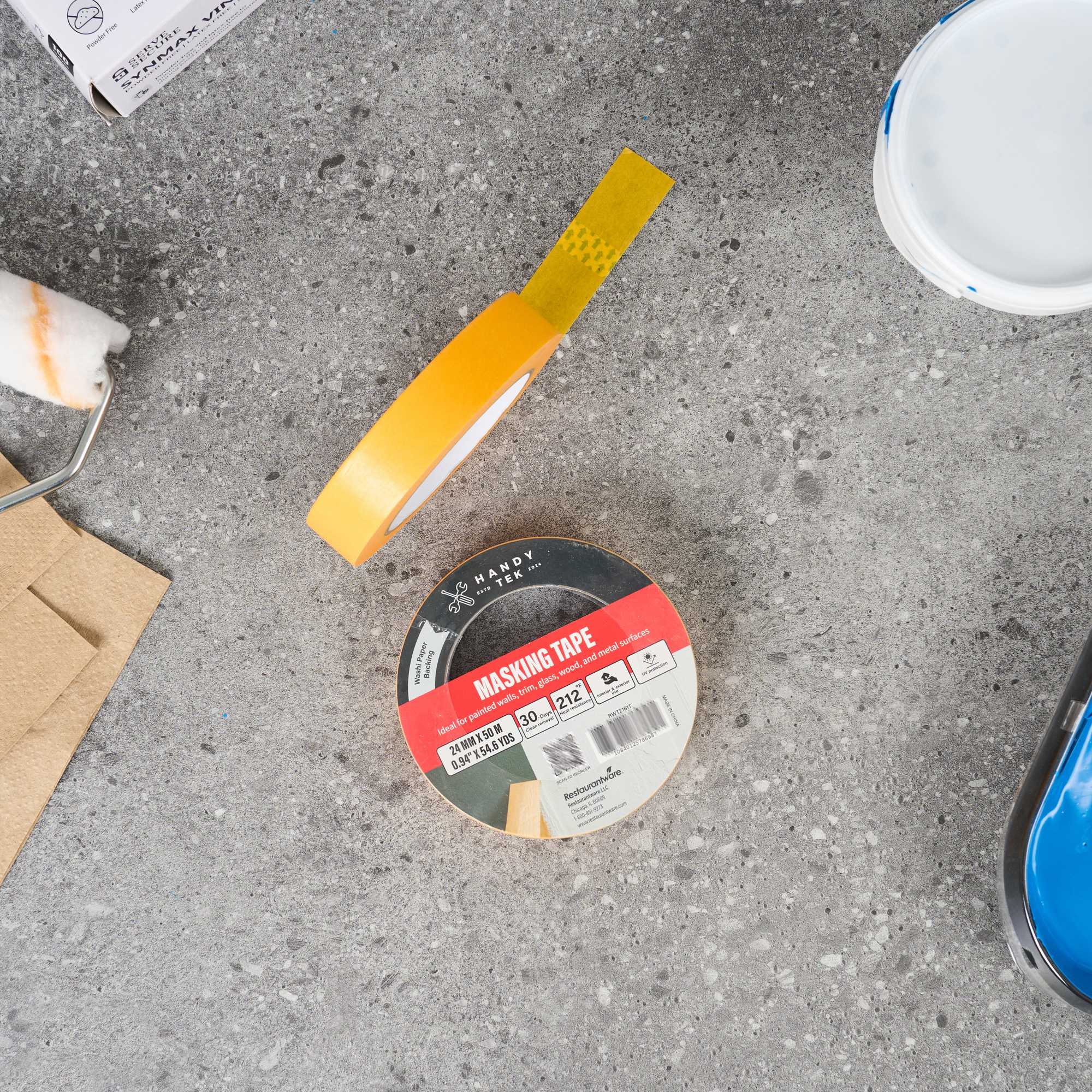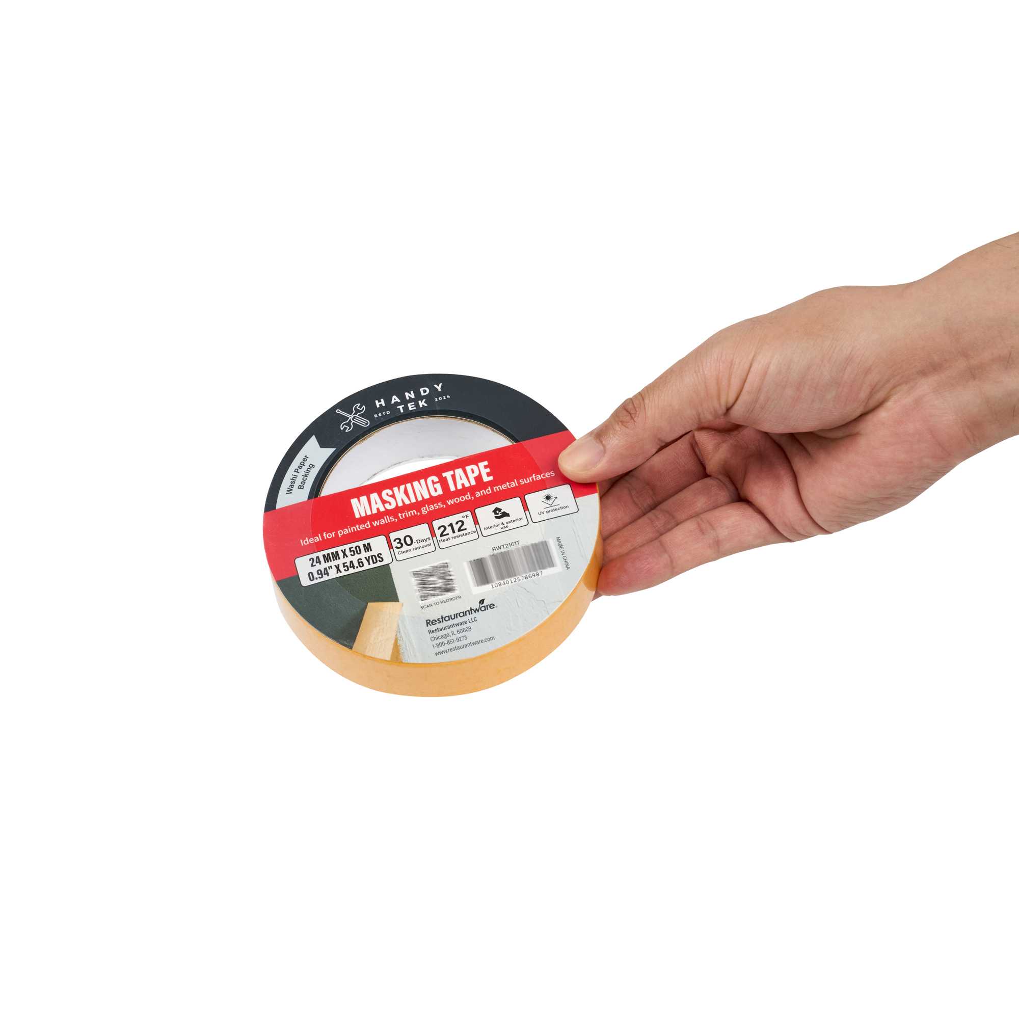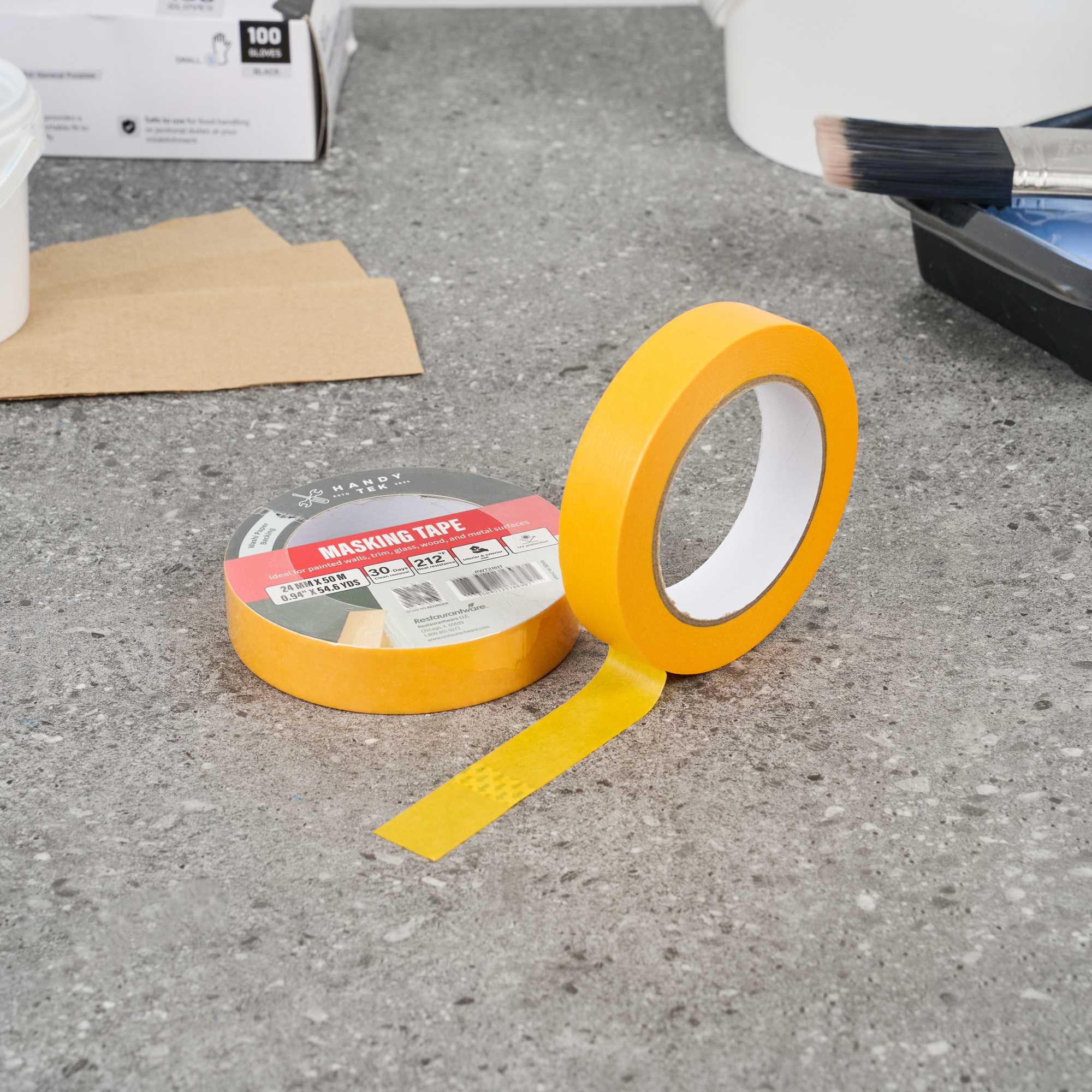 Improve your painting precision with our Handy Tek Orange Rice Paper Masking Tape Roll. Made with washi paper backing, this masking tape offers crisp paint lines and flexible handling, ideal for detailed work. Designed for professional results, this painter’s tape removes cleanly for up to 30 days, peeling off without leaving residue even after extended use. Built with heat resistance and UV protection, this adhesive tape performs reliably in warm settings and resists sun exposure, making it perfect for indoor and outdoor masking projects. This versatile masking tape adheres well to painted walls, trim, glass, wood, and metal, supporting a wide range of surface applications. Measuring 1 inch in width with a total length of 54 yards, this painter’s tape roll is compact, long-lasting, and easy to store. Sold in a 96 count box.