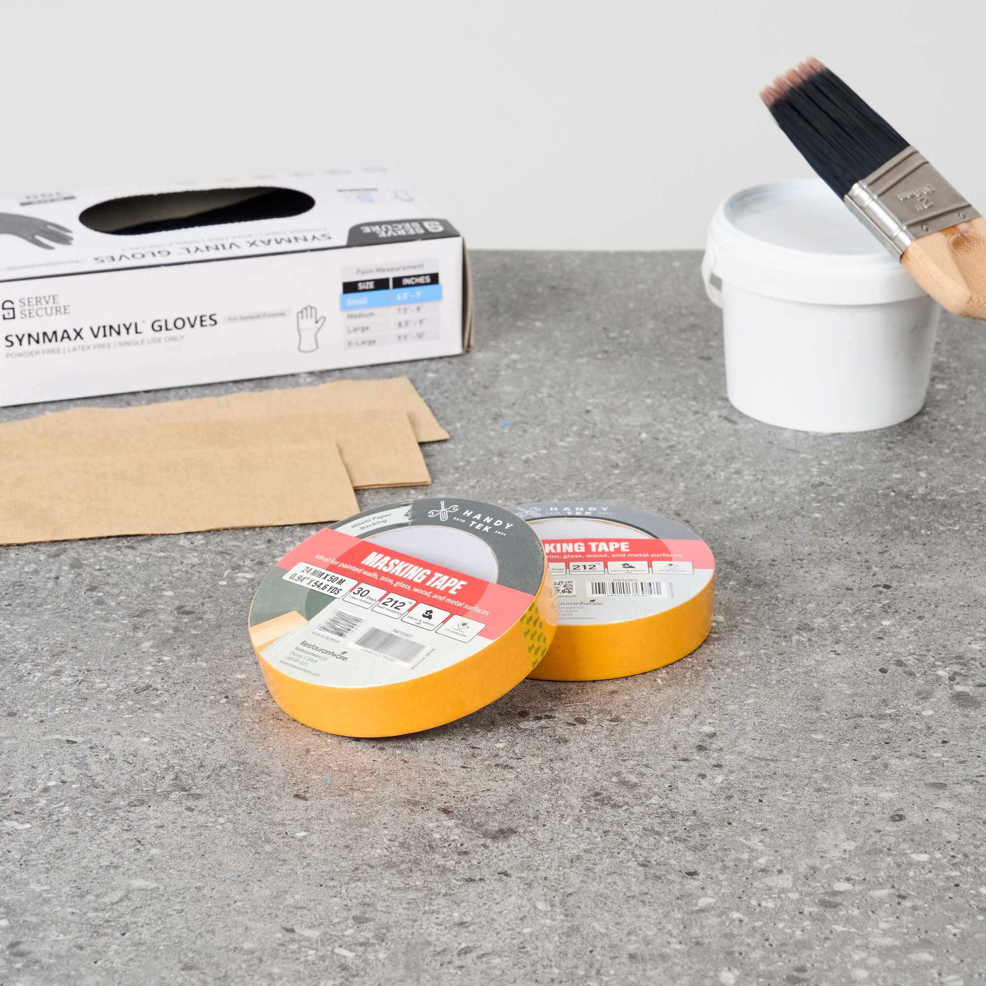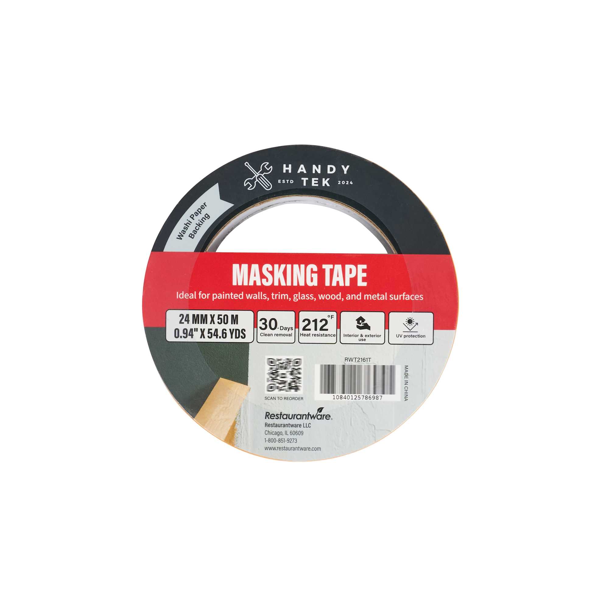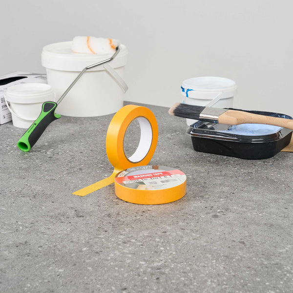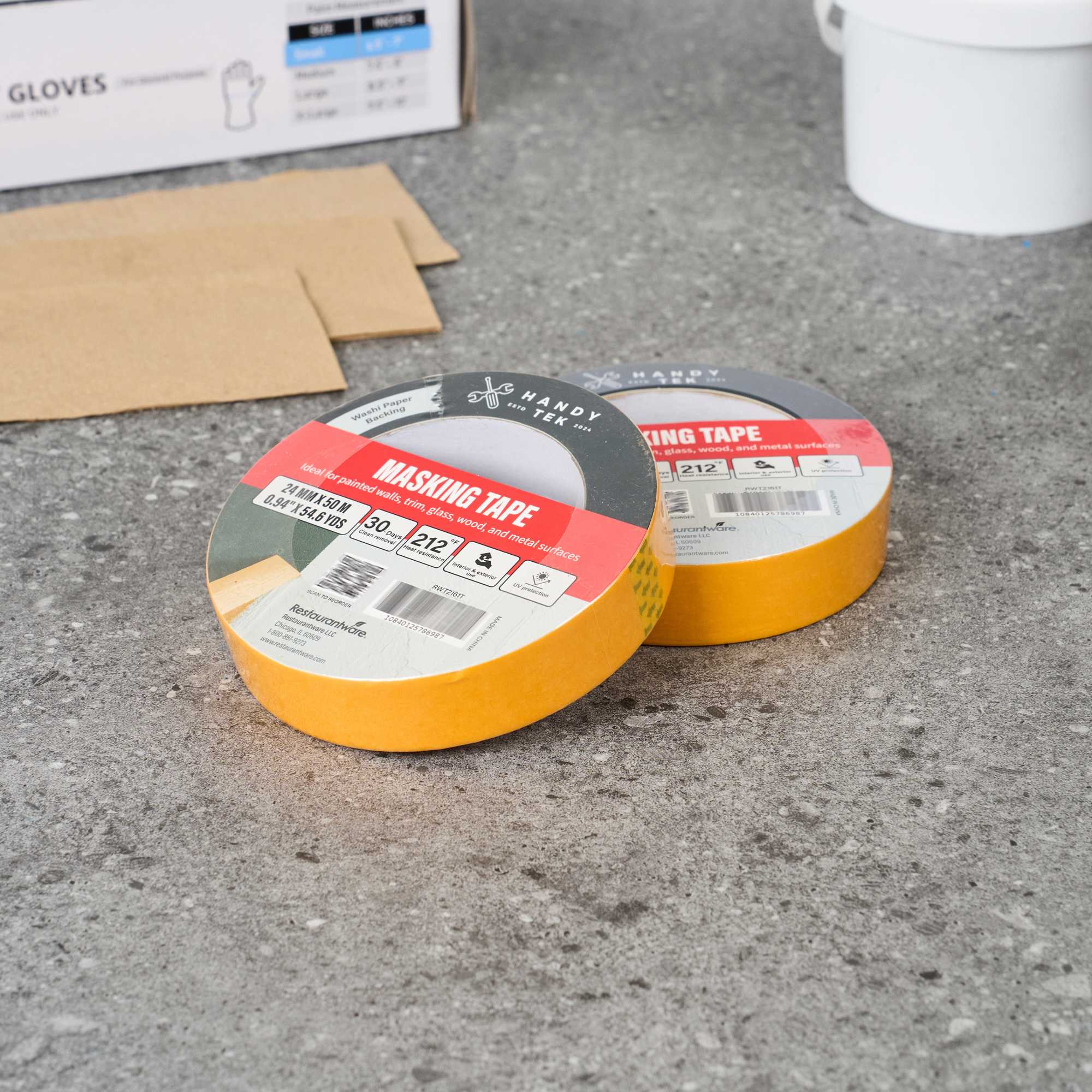 Improve your painting precision with our Handy Tek Orange Rice Paper Masking Tape Roll. Made with washi paper backing, this masking tape offers crisp paint lines and flexible handling, ideal for detailed work. Designed for professional results, this painter’s tape removes cleanly for up to 30 days, peeling off without leaving residue even after extended use. Built with heat resistance and UV protection, this adhesive tape performs reliably in warm settings and resists sun exposure, making it perfect for indoor and outdoor masking projects. This versatile masking tape adheres well to painted walls, trim, glass, wood, and metal, supporting a wide range of surface applications. Measuring 1 inch in width with a total length of 54 yards, this painter’s tape roll is compact, long-lasting, and easy to store. Sold in a 96 count box.